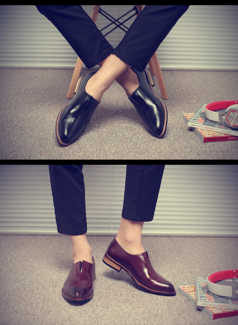 Men's Pointed British Retro Casual Formal Shoes Barber Business Korean Oxfords Leather Shoe