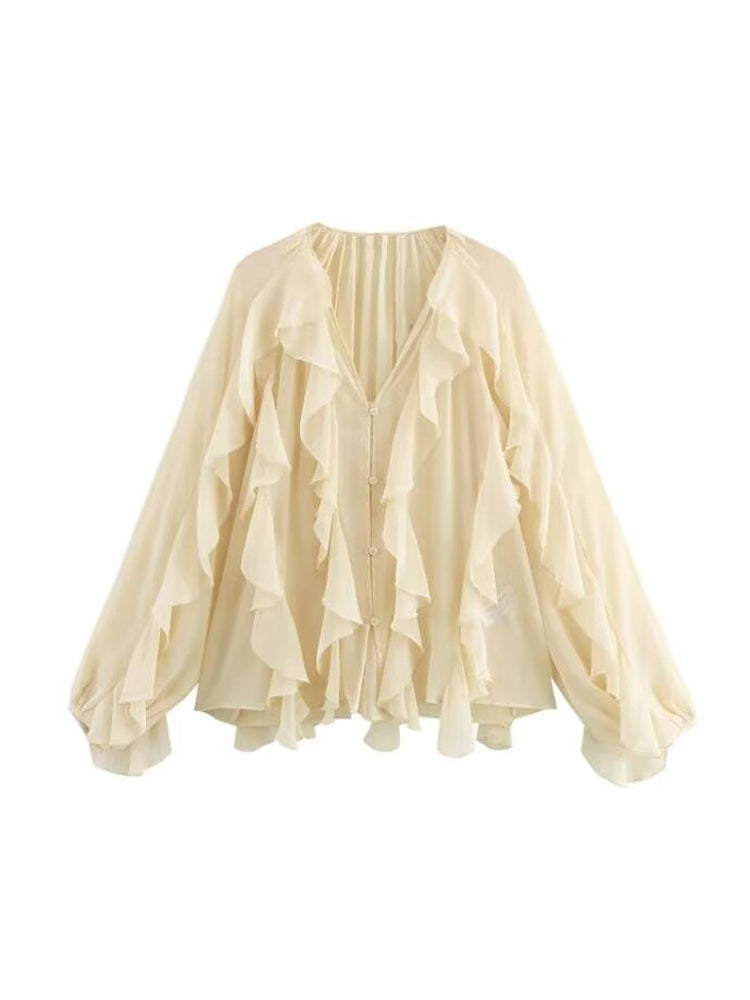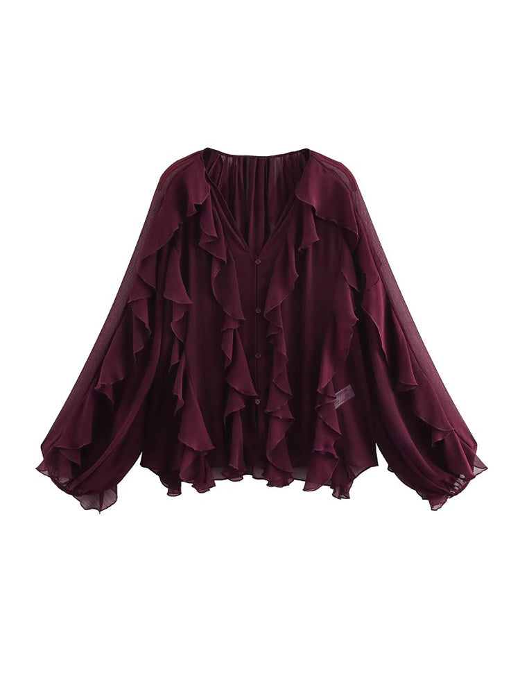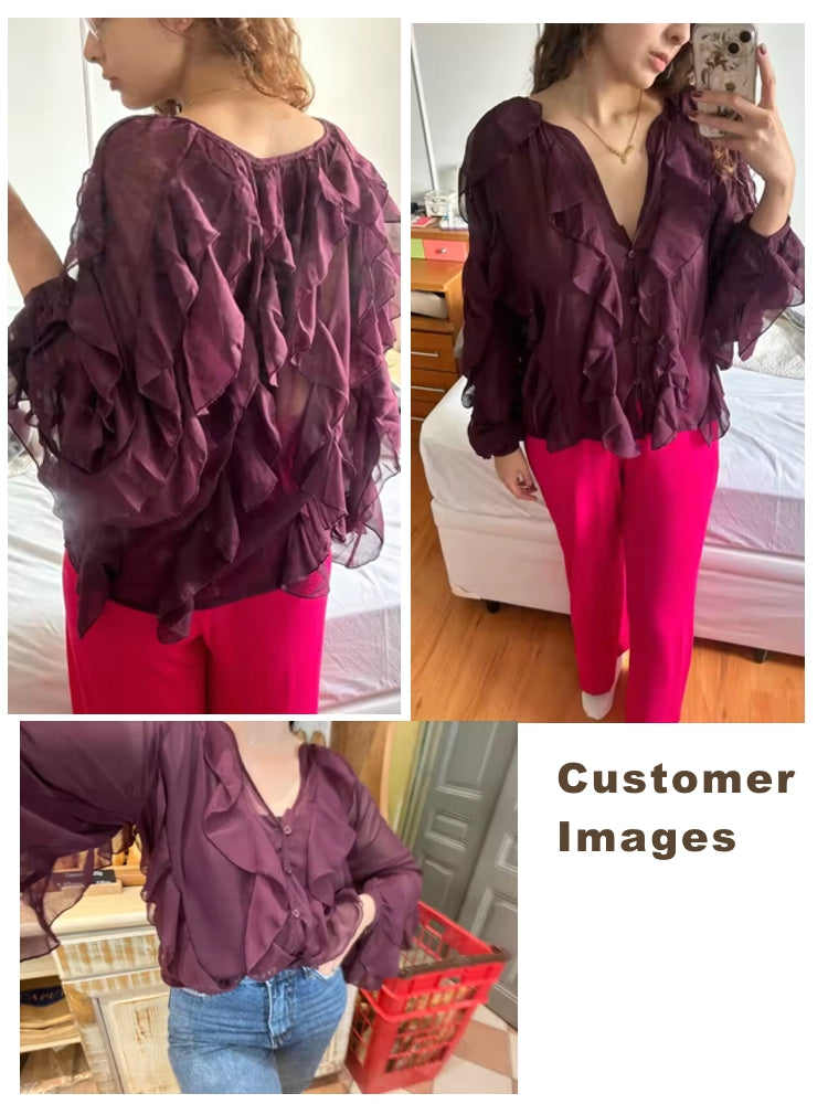 Ruffle Blouses For Women Semi Sheer Shirts