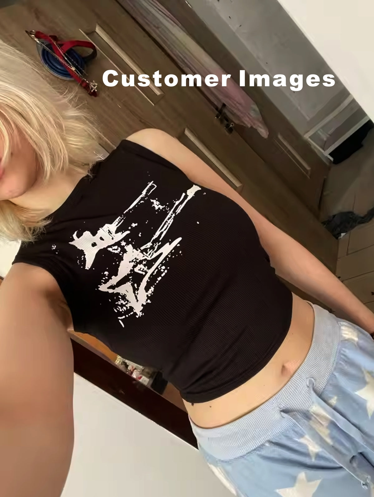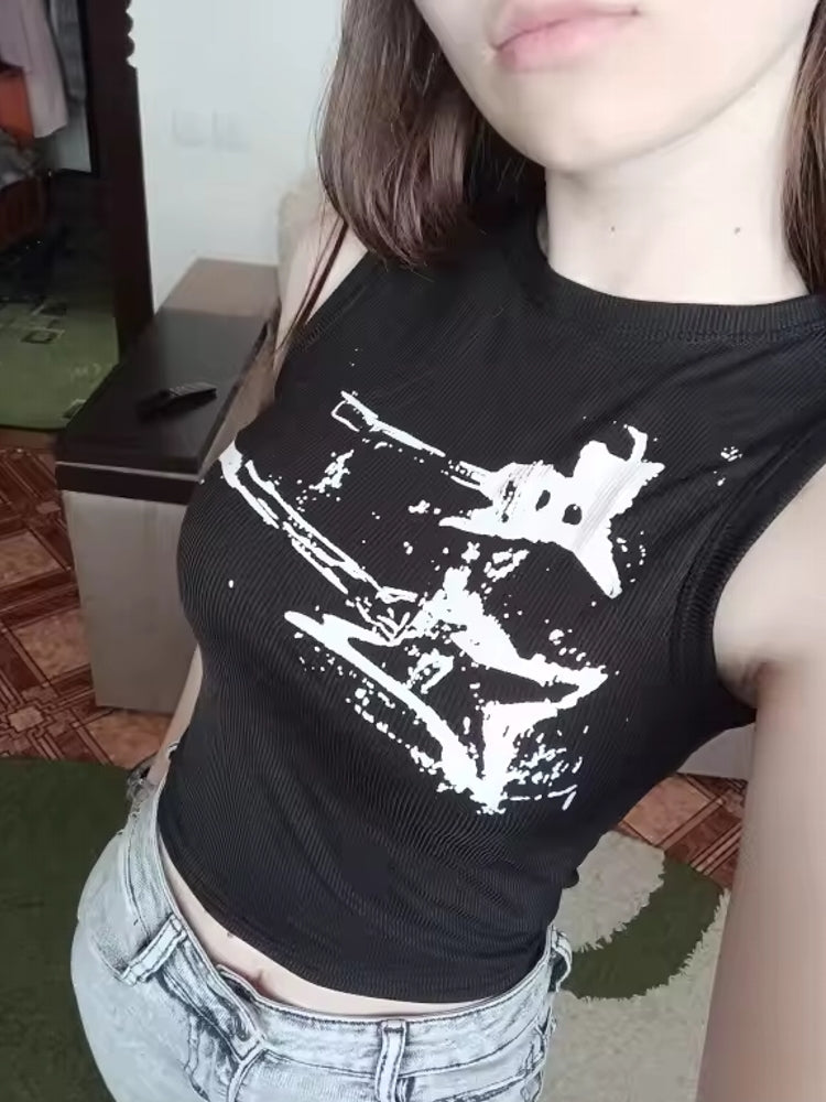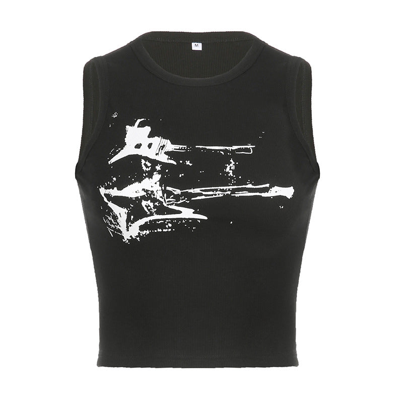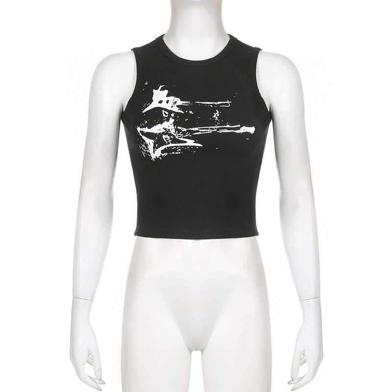 Guitar Print Sleeveless Tank Top
