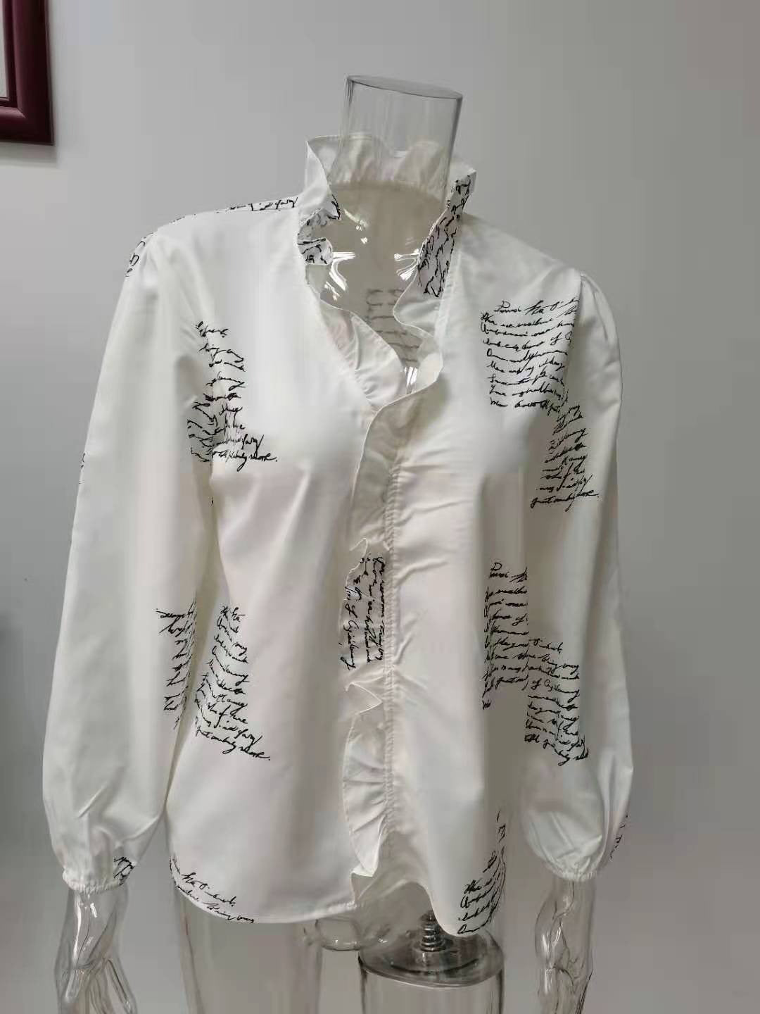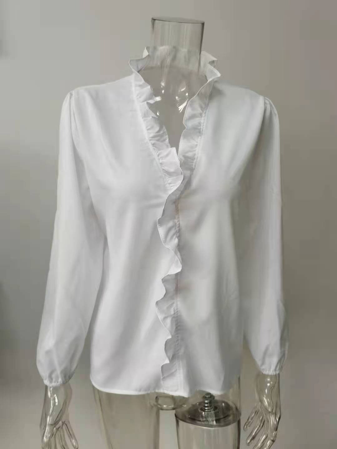 Ladies Solid Ruffle Long Sleeve Blouse Tops & Shirts for Women Embrace Seasonal Vibes With White Ruffle Tops, Including Pretty Blouses And T-shirts
