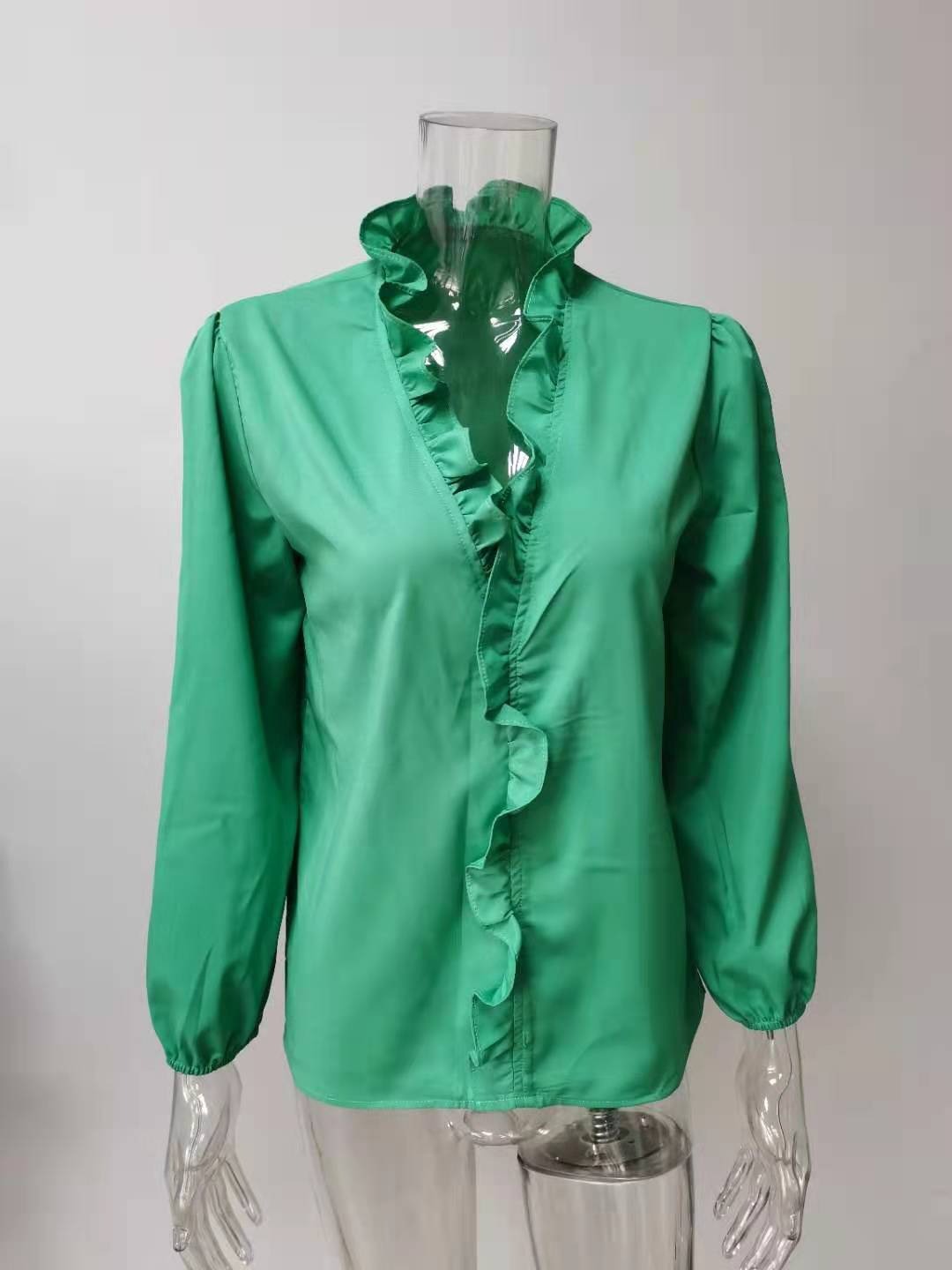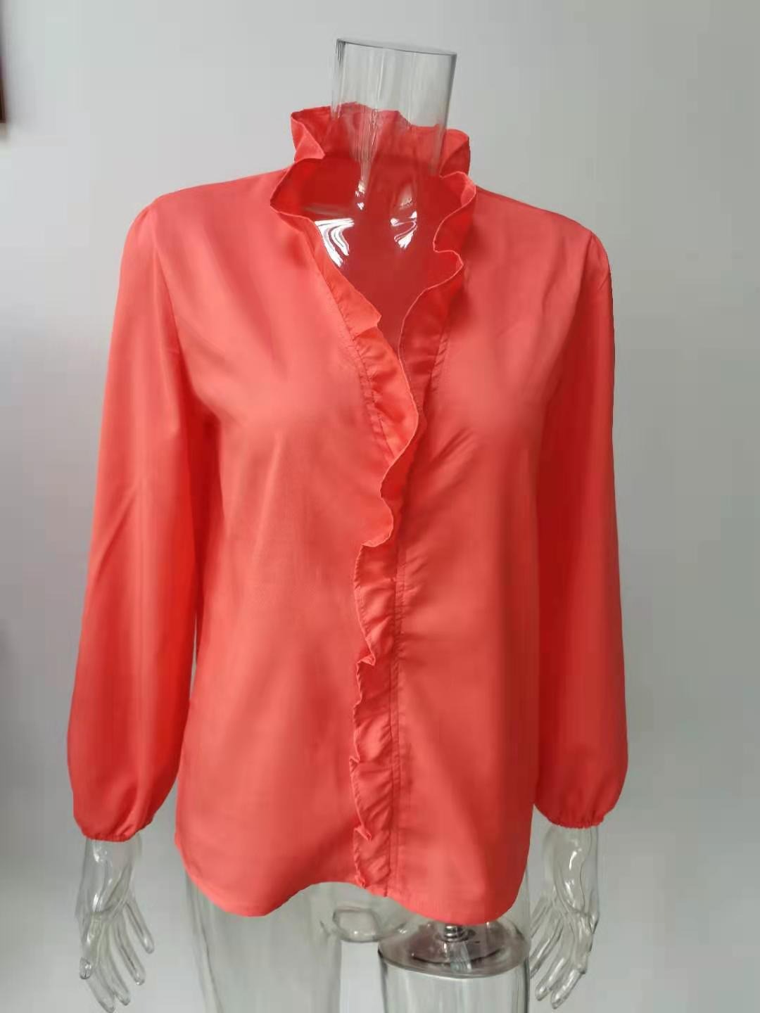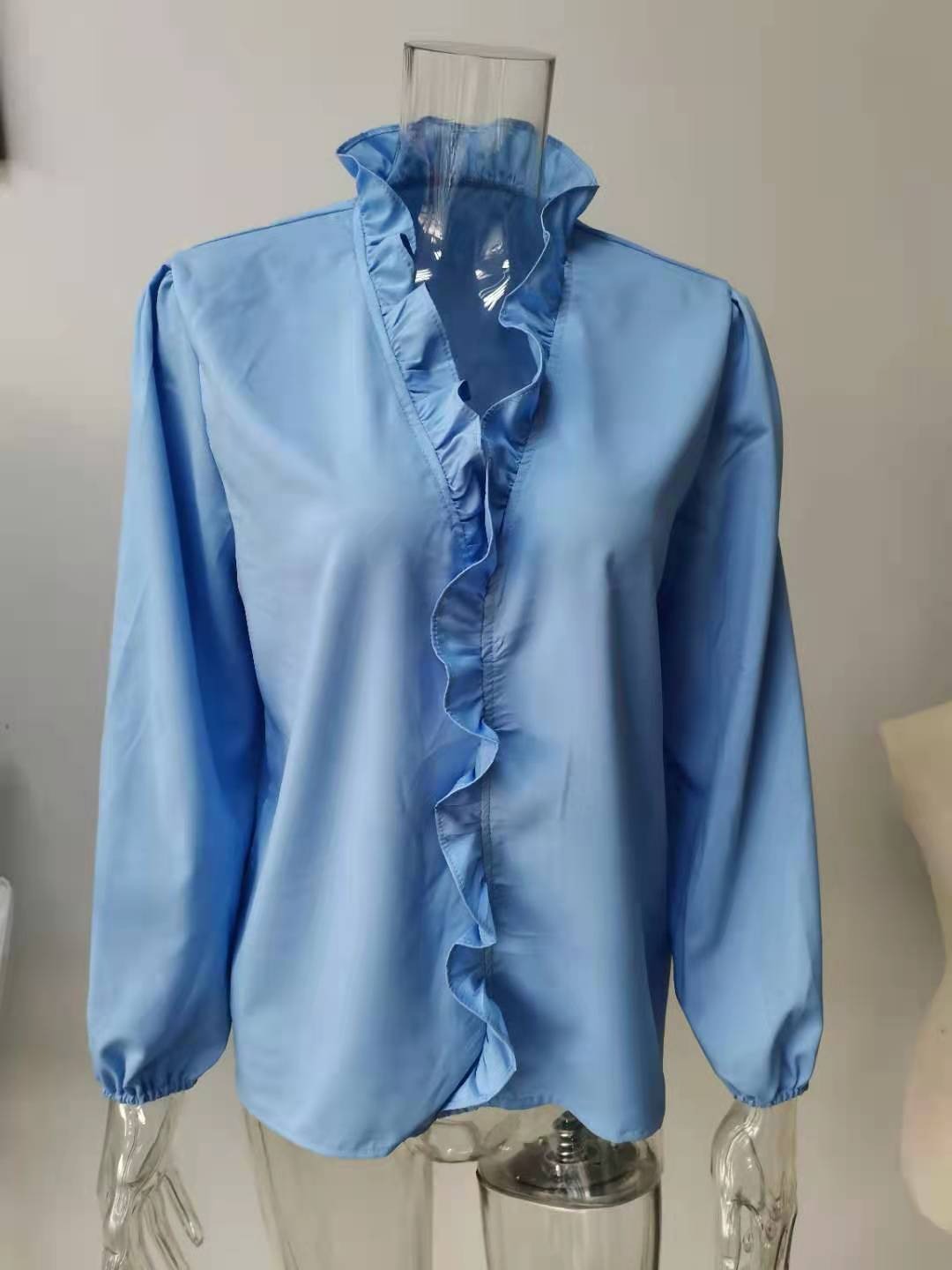 Solid Color Ruffled Blouses Tops & Shirts for Women