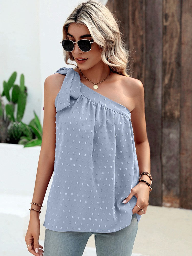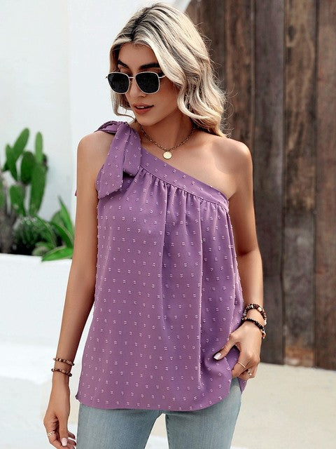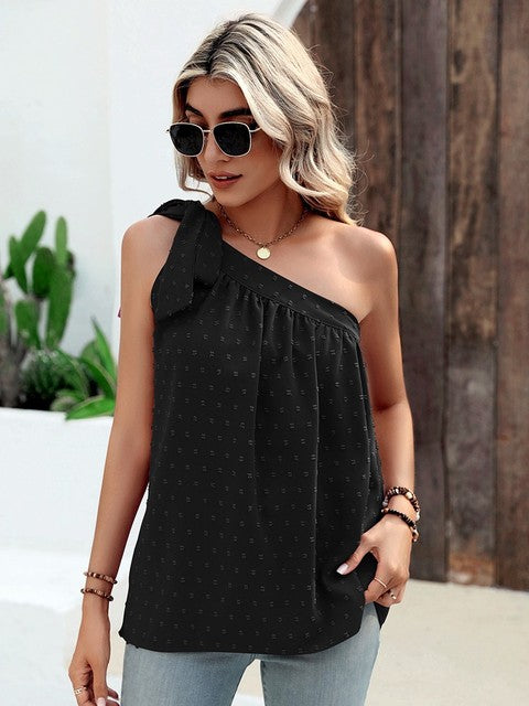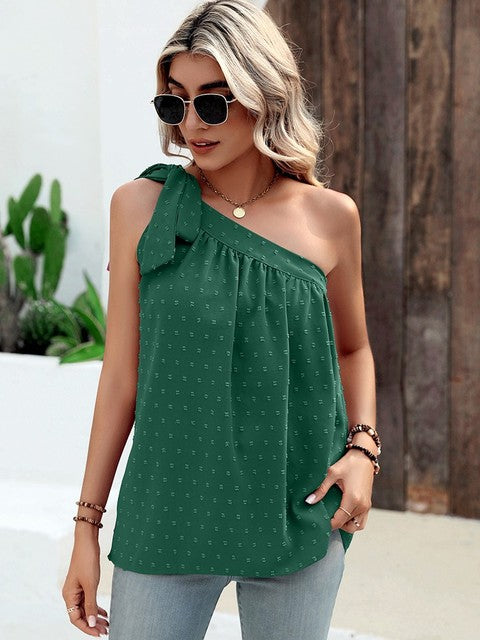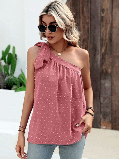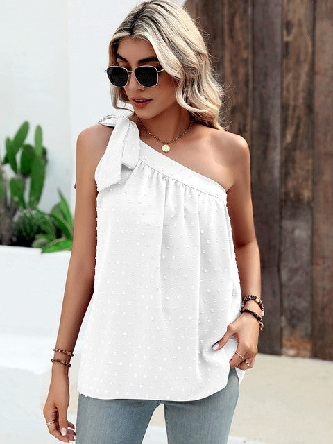 Summer One Shoulder Tops Women Clothes Chiffon Tank Top