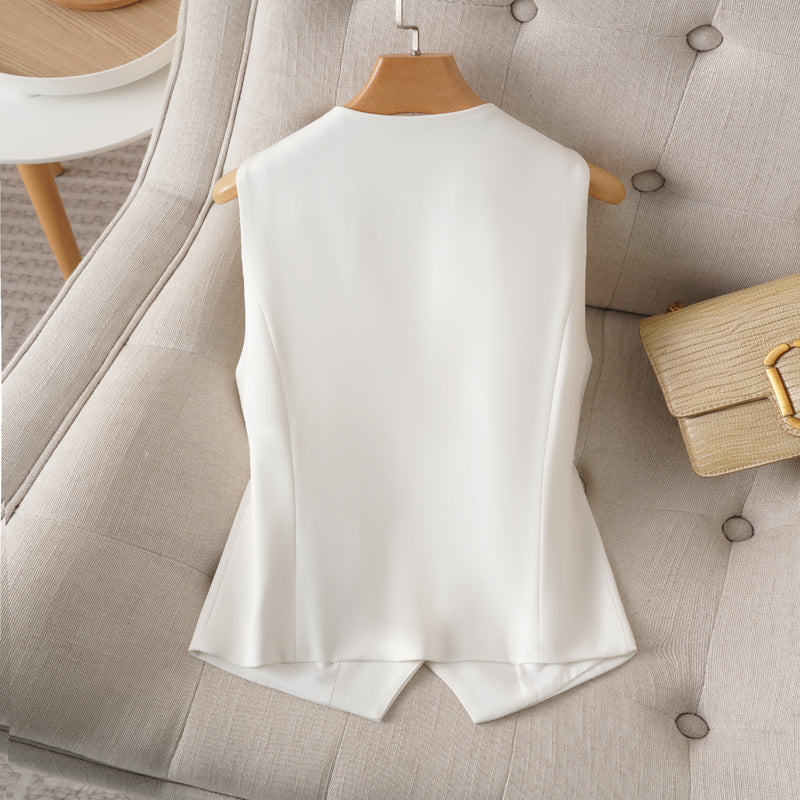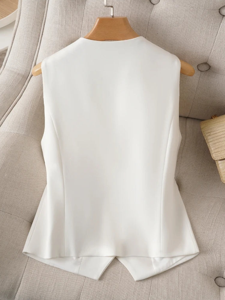 Single-Breasted Short Round Neck Sleeveless Suit Vest For Women In Spring And Autumn Fashionable Workplace Elegant Slimming Look Women's Vest Top Outer Wear