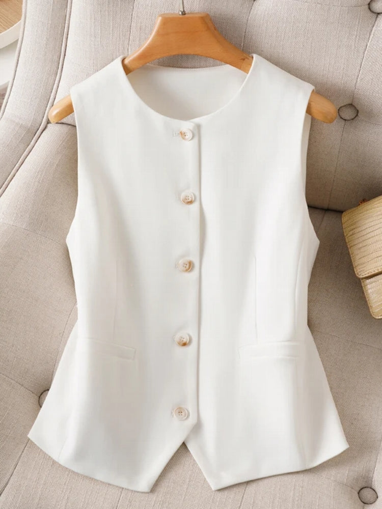 Single-Breasted Short Round Neck Sleeveless Suit Vest