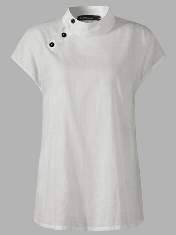 Women Short Sleeve Blouse Fashion Cotton Linen Shirt Oversized Blouse Casual Loose Solid Color Tunic Summer