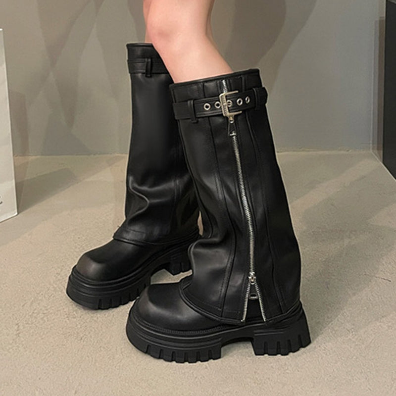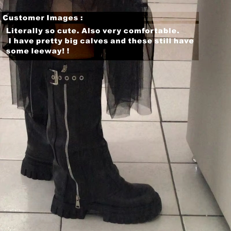 Stylish belt buckle design, they add an elegant touch to your winter wardrobe. The platform sole provides added comfort and height, making them ideal for casual outings. These knee-high booties are not only practical for colder weather but also versatile enough to complement a variety of outfits.