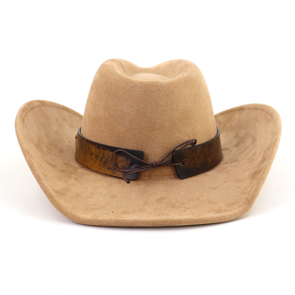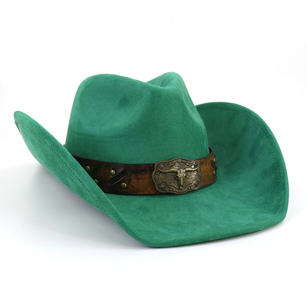Western Big Brim Cowboy Hat Bull's Head Leather Cowgirl Hat