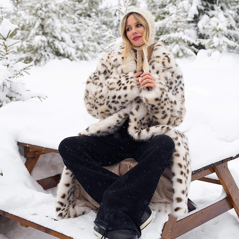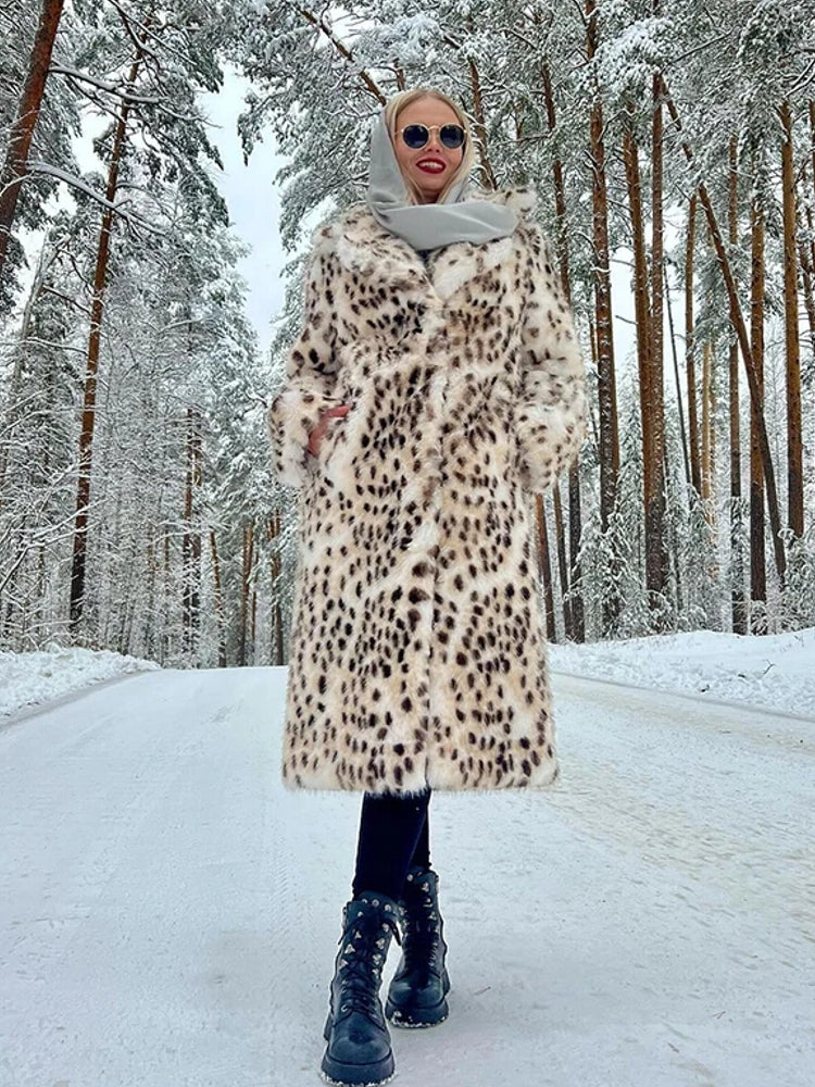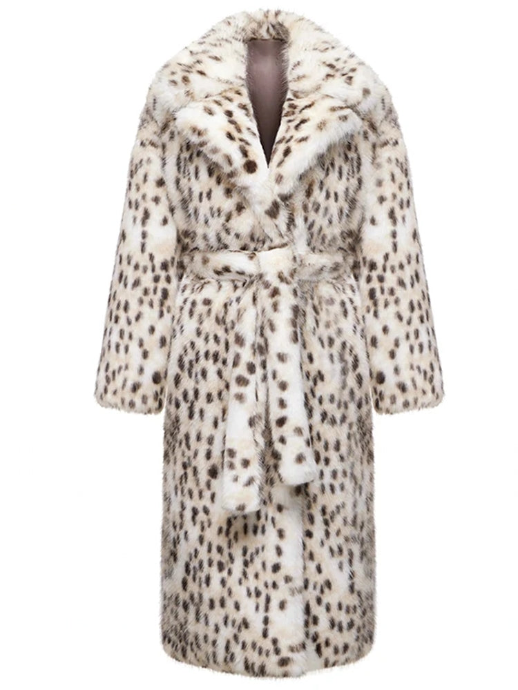 Luxury Maxi Long Leopard Belted Faux Fur Coat
