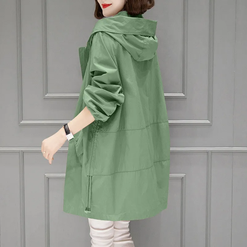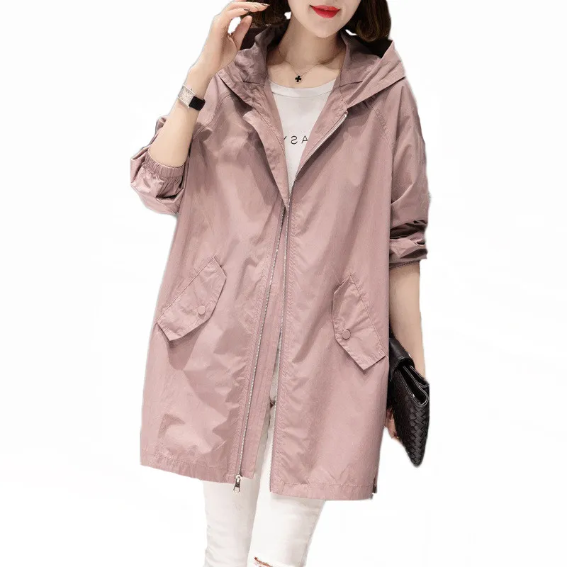 Casual Windbreaker For Women Spring Autumn New Fashion Solid Color Loose Mid Length Office Lady Thin Jacket Female