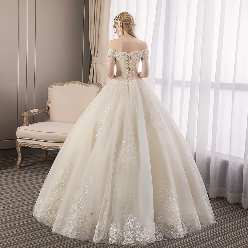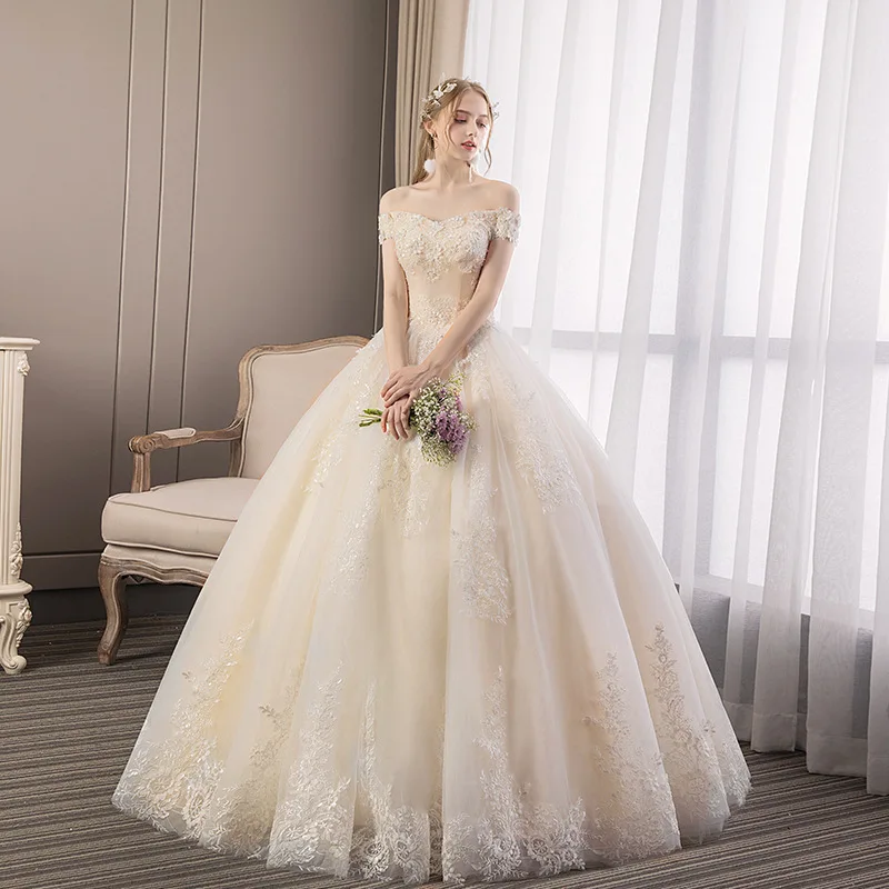 Champagne Color Sexy Off Shoulder Princess Wedding Dress