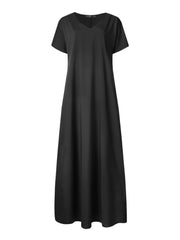 Simple Style Pure Color V-neck Short Sleeve Elegant Pockets Women Maxi Dress
