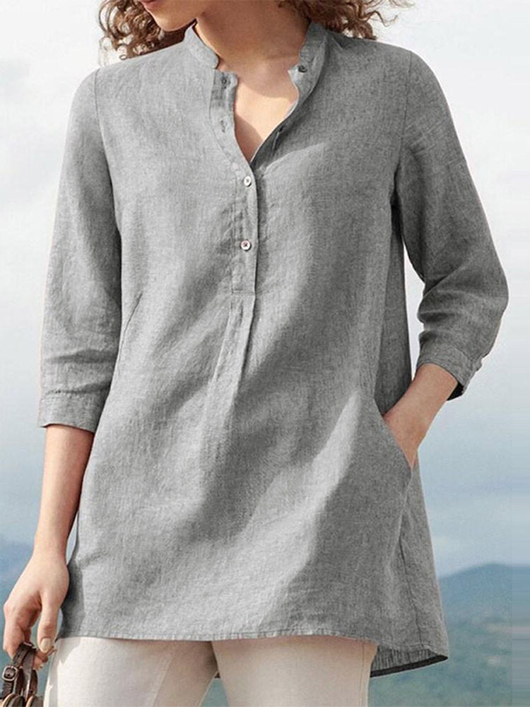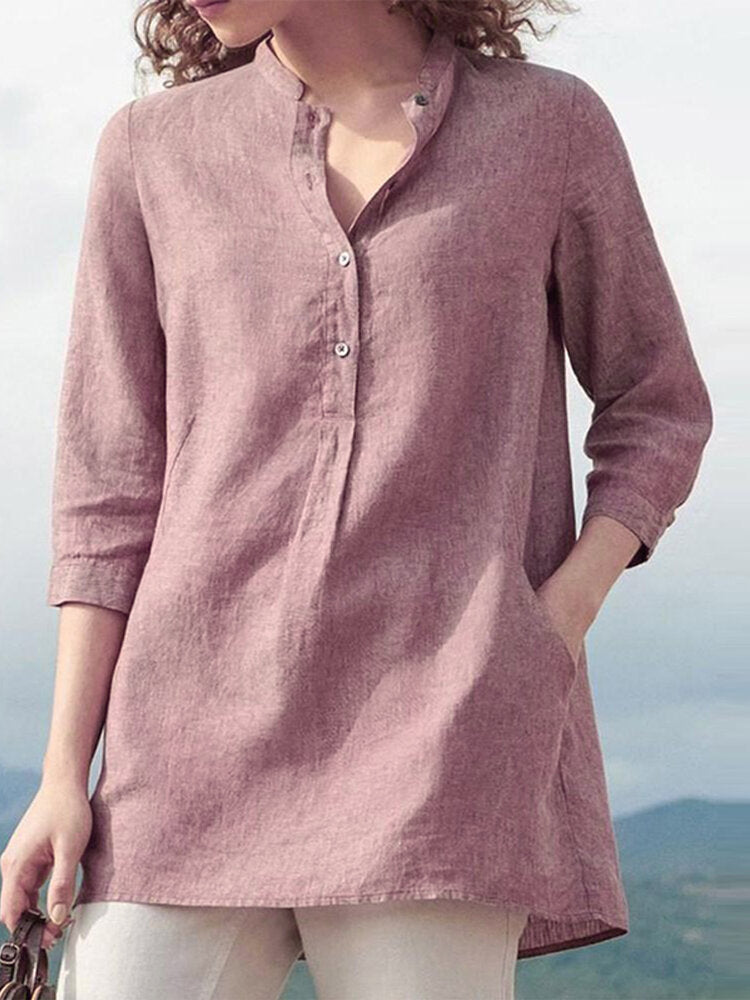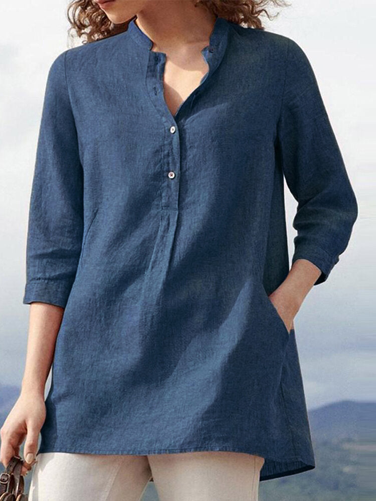 Women 3/4 Sleeve V Neck Button Down Tops Casual Loose Shirts Blouse