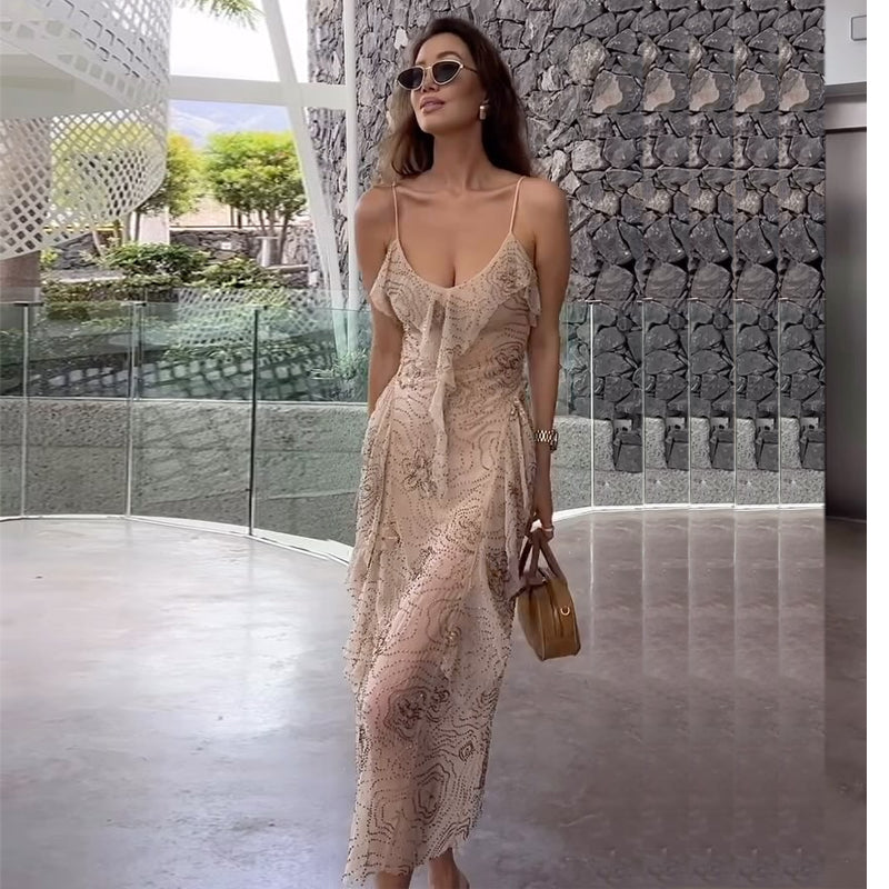 Sequin Midi Dress Woman Ruffle Long Dresses