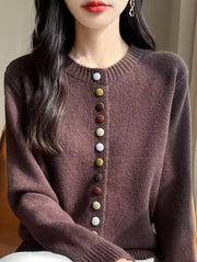 This cardigan is a single-breasted design with an O-neck and long sleeves, providing warmth and style. Made from a blend of polyester, wool, and cashmere, the fabric is medium weight (120–220 g/m²) with medium stretch, ensuring both comfort and durability. Perfect for layering or wearing as a bottoming shirt.