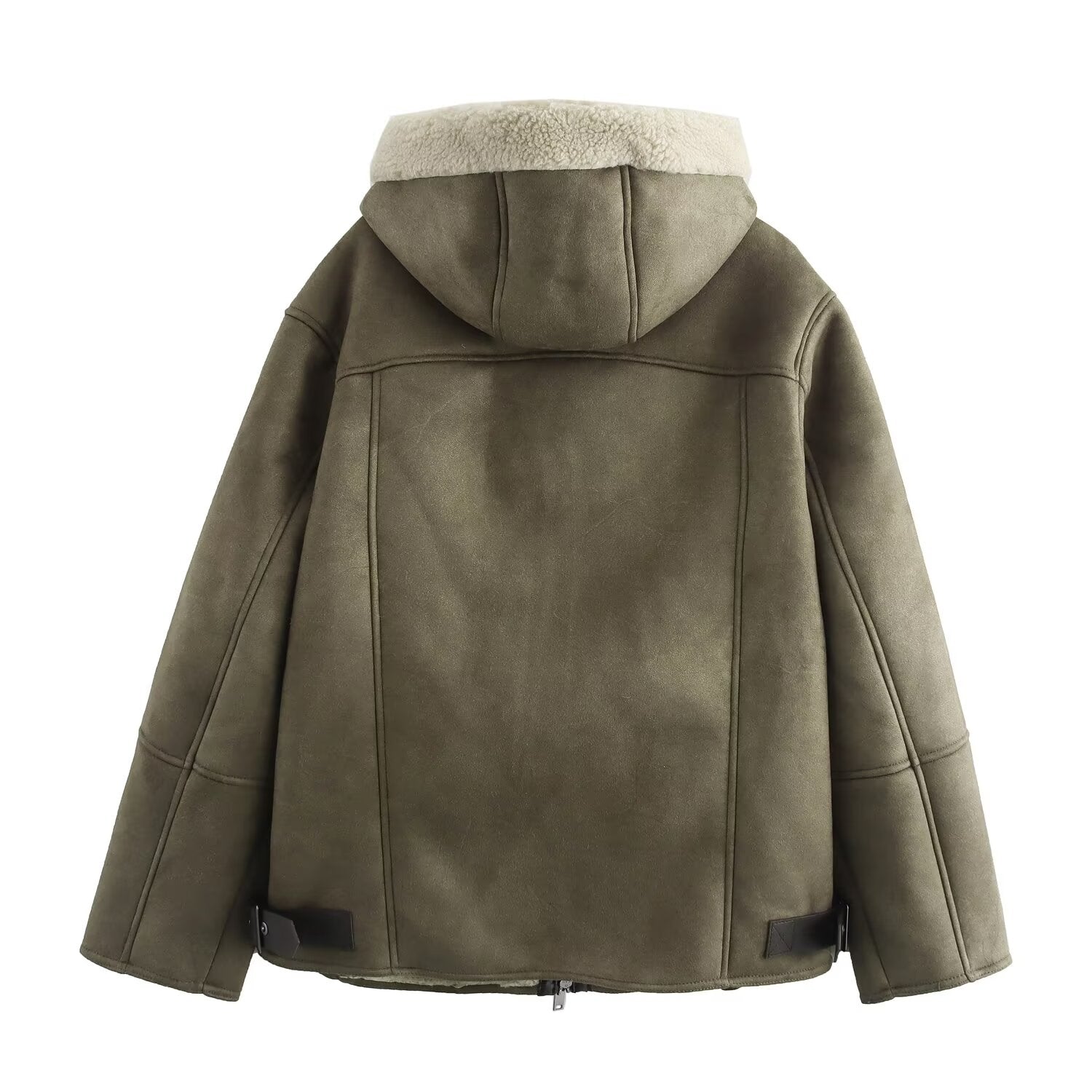 Women Zip Padded Plush Jacket Women Outerwear Winter Coat
