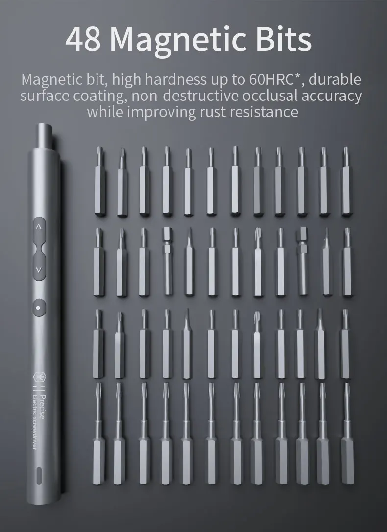 62-IN-1 SCREWDRIVER SET: This upgraded electric screwdriver set includes 36 screwdriver bits, of which there are 12 extended bits; Comes with pry bar, opening piece, tweezers, USB charging cable, and portable case to help you work efficiently and intelligently.
