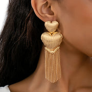 Heart-Shaped Tassel Long Earrings, Fashionable And Exaggerated Earrings, Suitable For Daily Wear And Banquet Wear