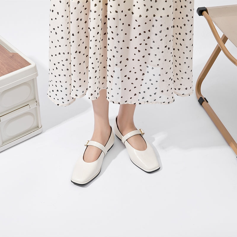 These Mary Jane flats are expertly designed for both style and durability. Featuring a split leather upper for a premium look, a full grain leather insole for personalized comfort, and a rubber outsole to provide stability and traction, they ensure long-lasting wear. The square toe design adds a modern touch, while the buckle strap closure offers a secure and adjustable fit, making them perfect for all-day use.