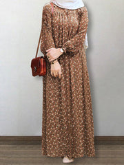 Floral Print Puff Sleeve Lace-up Turn-down-collar Casual Women Maxi Dress