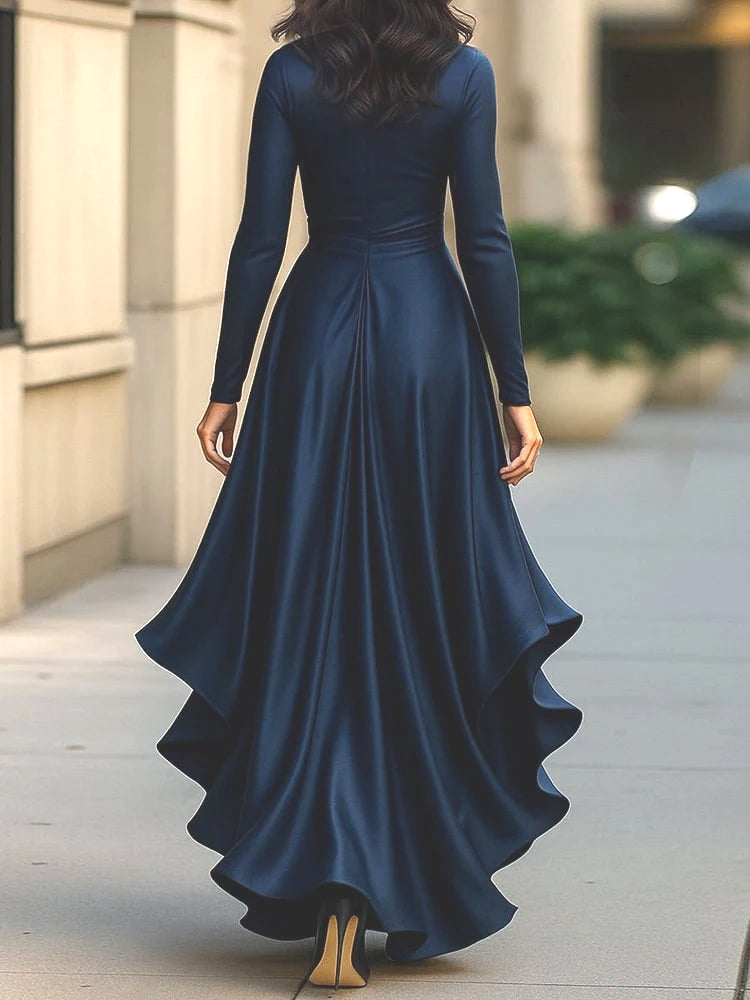 Sexy V-neck Long Sleeved Tie Up Waist Solid Color Dress