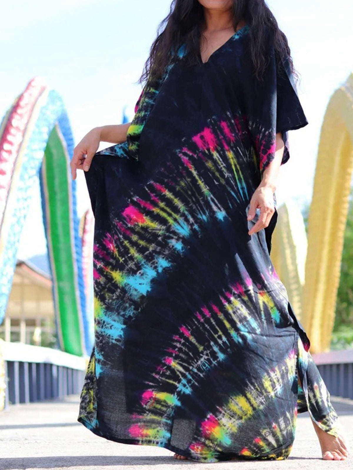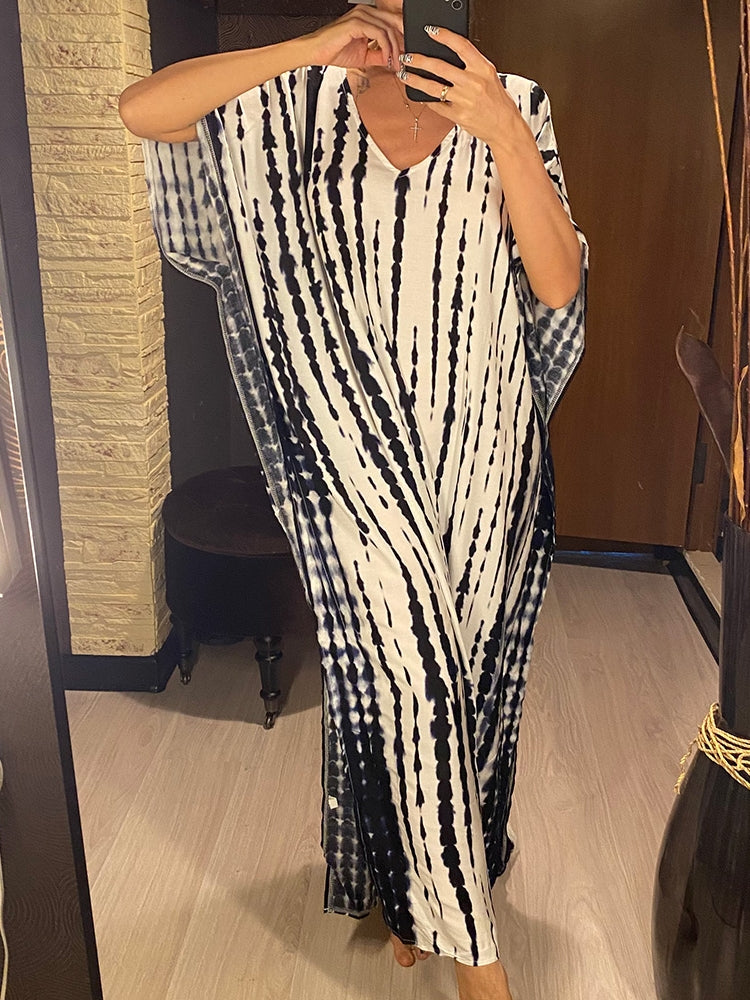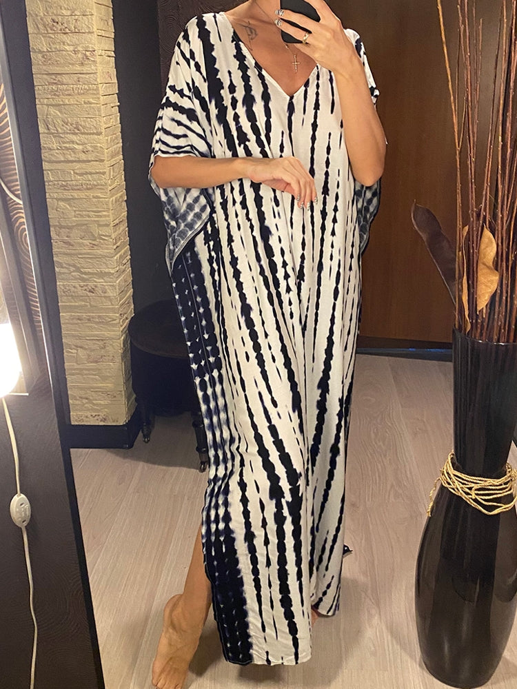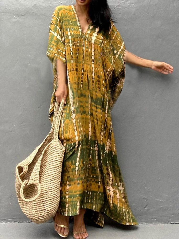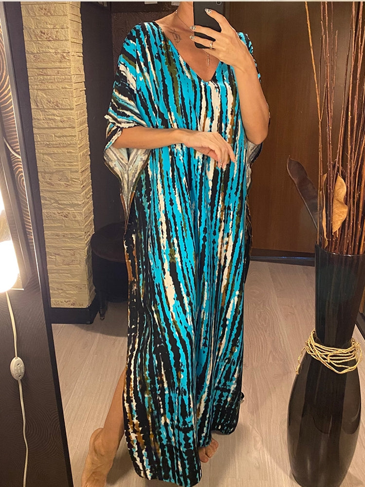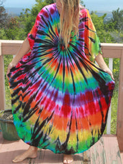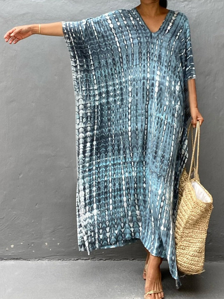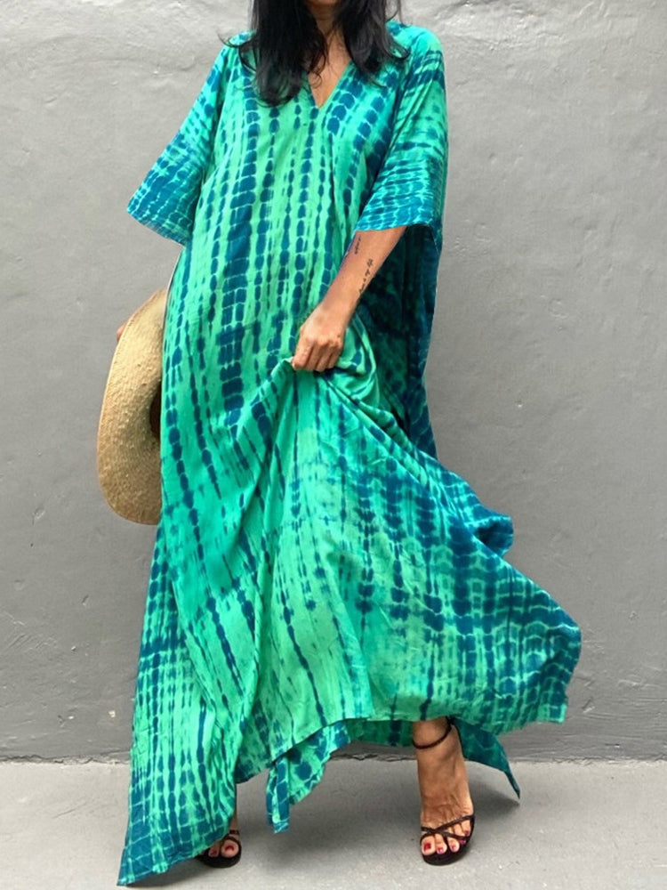 V Neck Printed Colorful Tie Dye Tunic Beach Cover Up