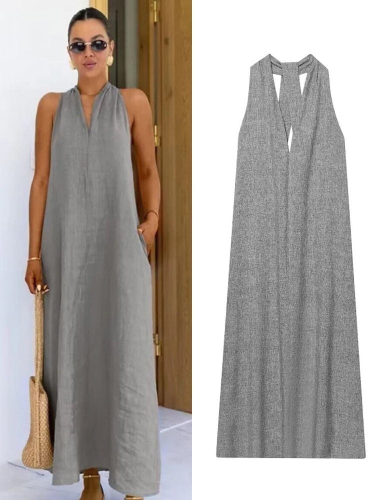 Collections:Maxi Dresses, Sleeveless Dresses, Solid Color Dresses