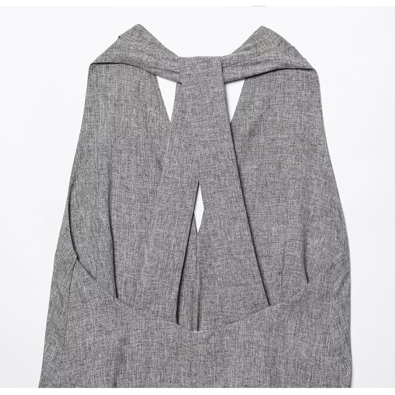 Women Grey Dress Halter Backless Long Dresses