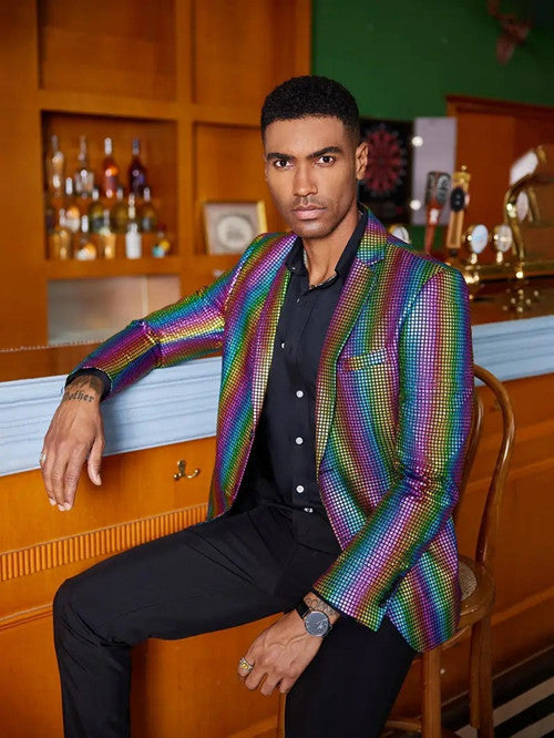 Fashion Men Luxury Plaid Suit Small Stretch Loose Jacket
