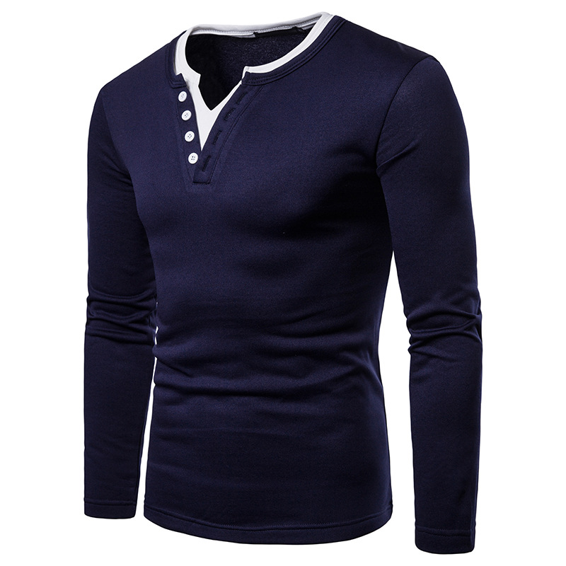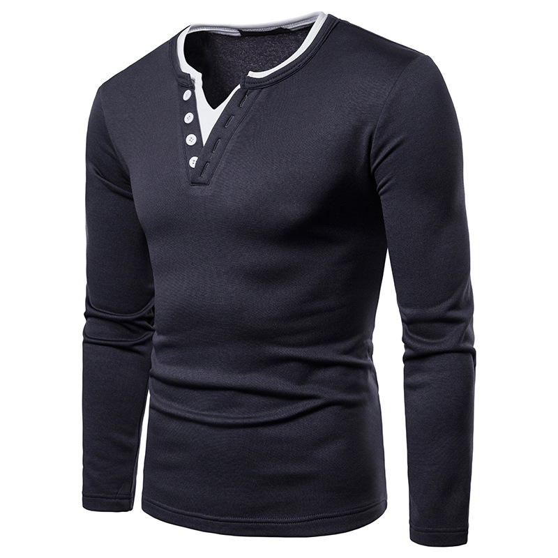 Plus size plus velvet warm henley collar long sleeve T-shirt