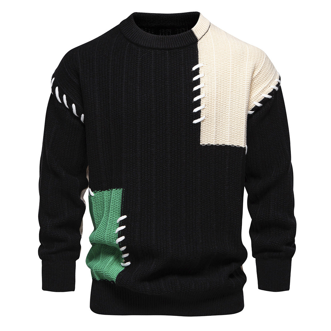 Casual Men Clothing Black Spliced Pullovers Sweater