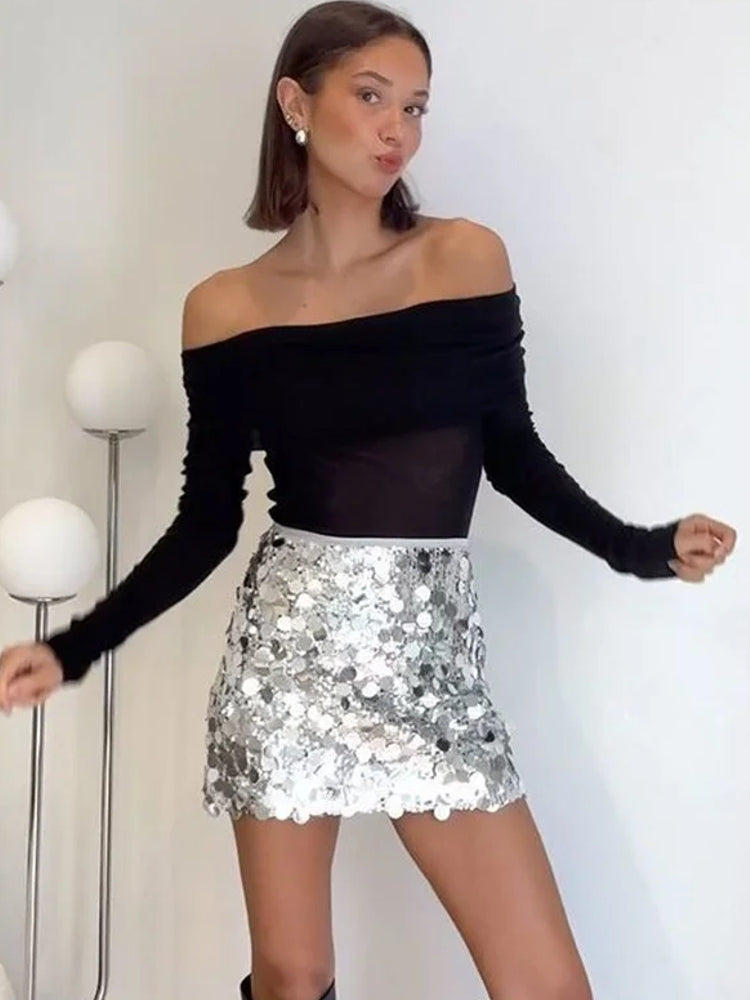 Blend of style and elegance with our Silver Sequin Skirt. Designed with a high waist and a flattering mini length, this skirt is ideal for making a statement at any event. Its shiny glitter finish adds a touch of glamour, perfect for women who love Y2K-inspired fashion. Pair it with your favorite top and heels for an effortlessly chic look!