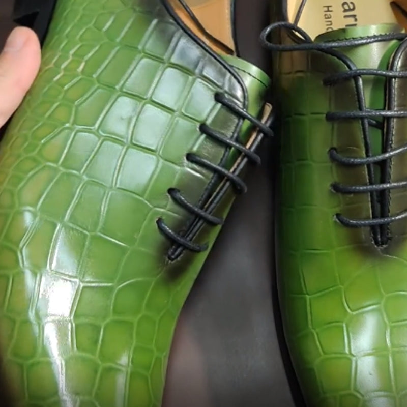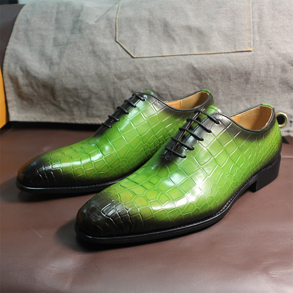 Men Genuine Cow Leather Green Dress Shoes Crocodile