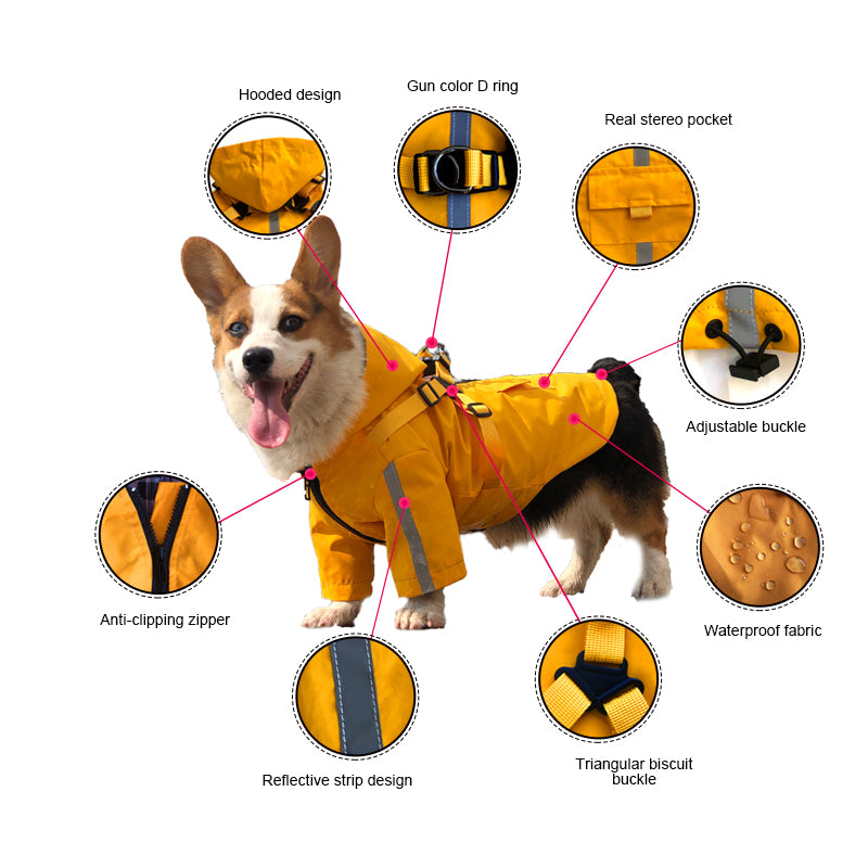 Reflective Dog Raincoat With Harness