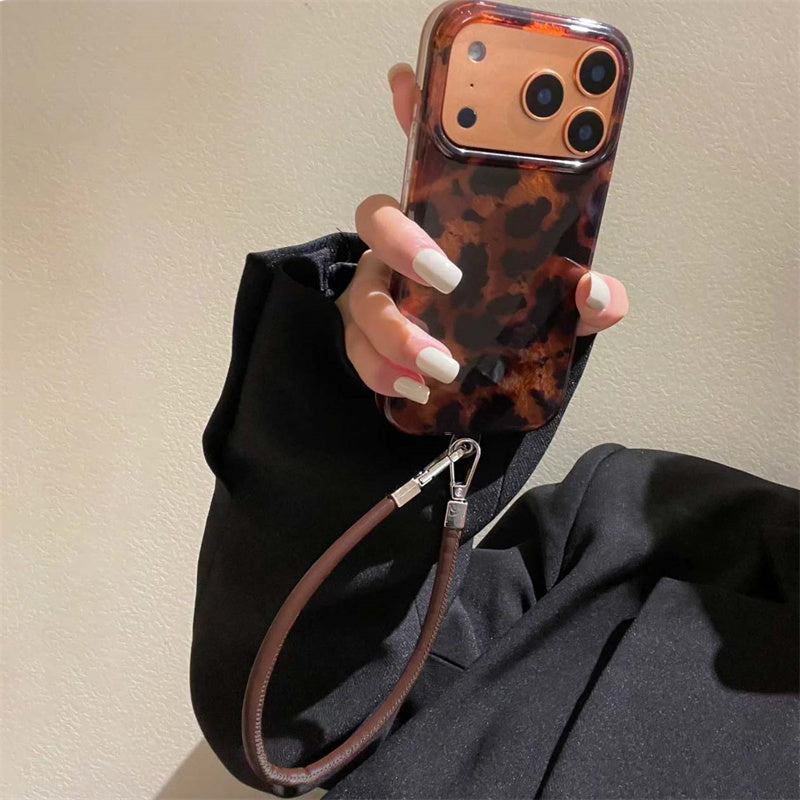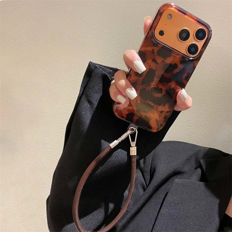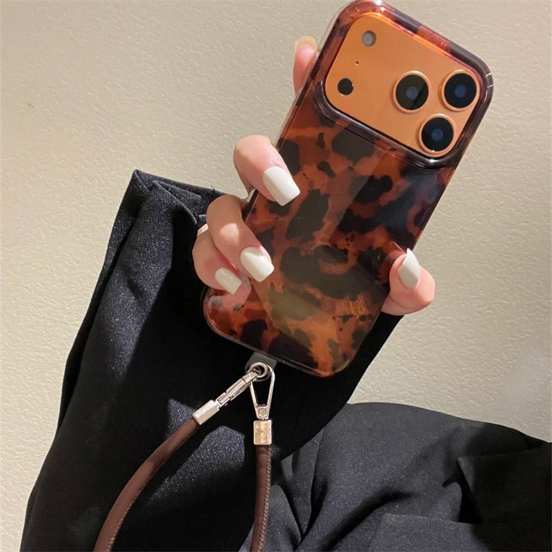Amber Leopard Print Phone Case With Lanyard For iPhone