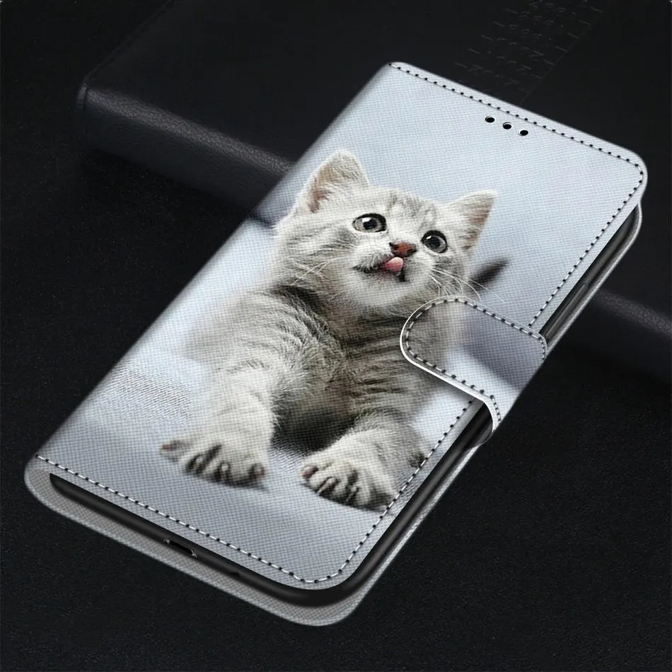 Features: Animal Pattern Phone Holster Card Slot Cover Magnet Wallet Kitten Capa