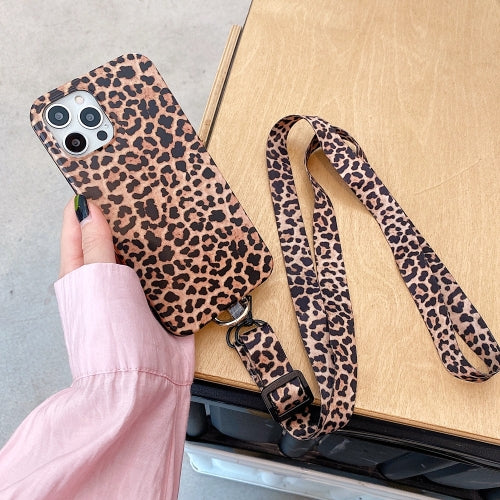 For iPhone 13 Leopard Print TPU Straight Edge Phone Case with Lanyard
