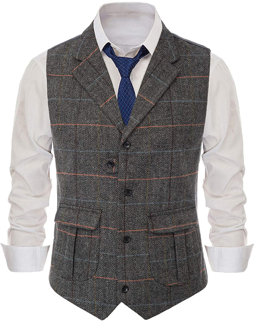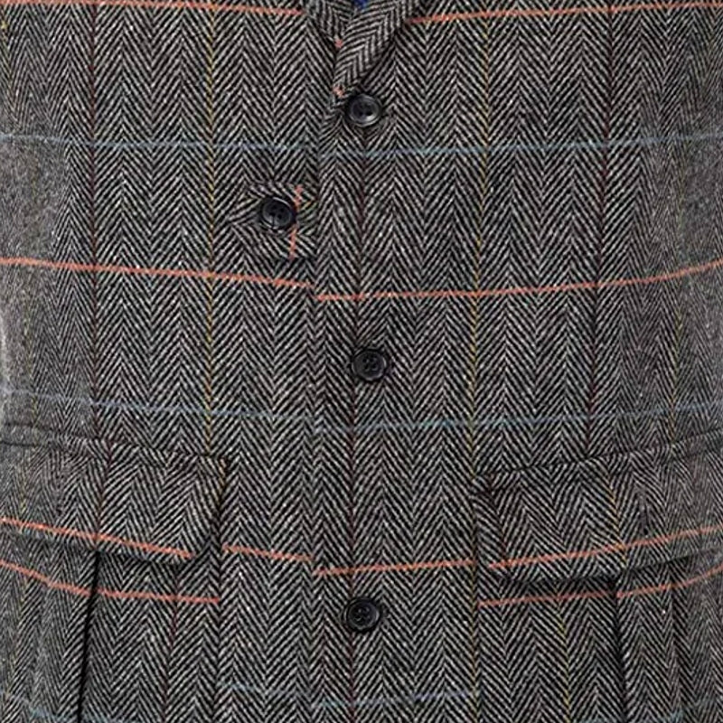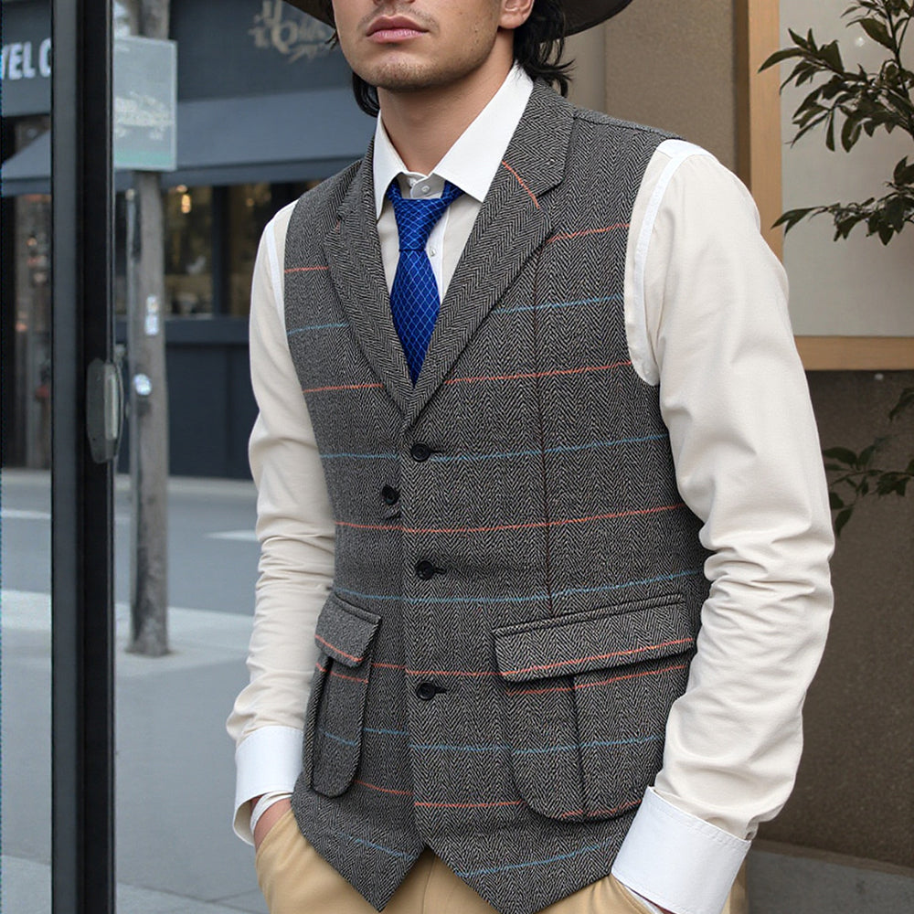 Stylish Four Seasons versatile men's casual suit vest featuring a classic notch lapel design and two functional pockets. The herringbone pattern adds a touch of sophistication, making it an excellent choice for weddings, groomsmen, or other formal occasions.
