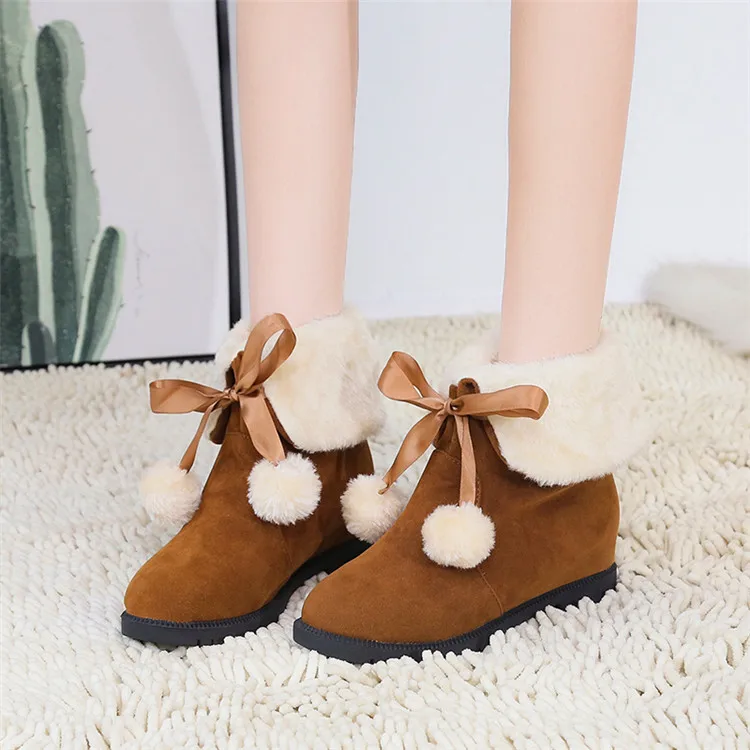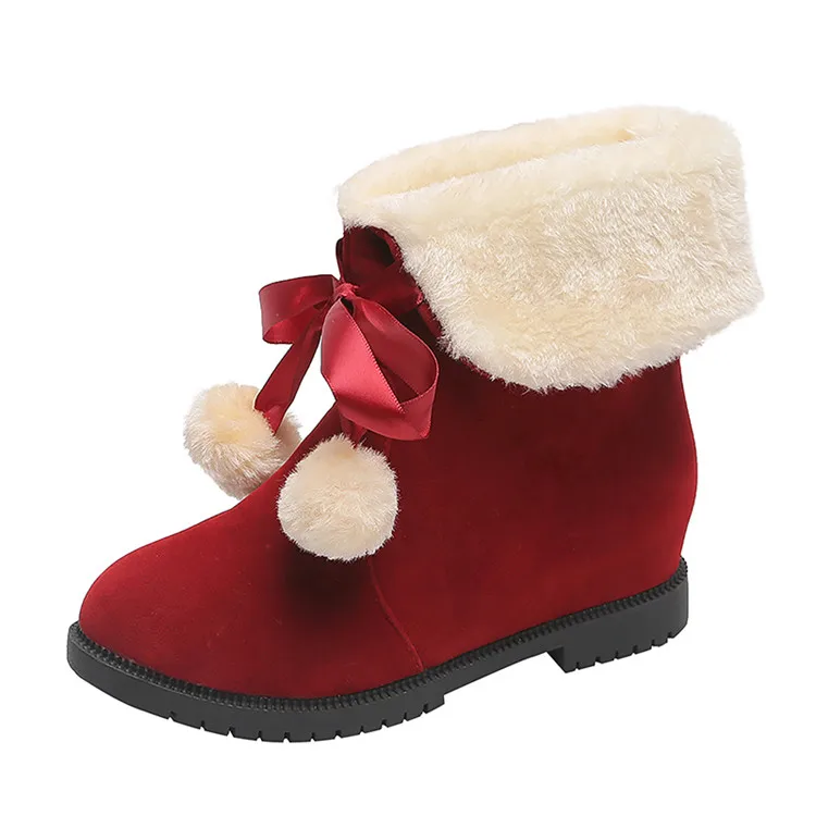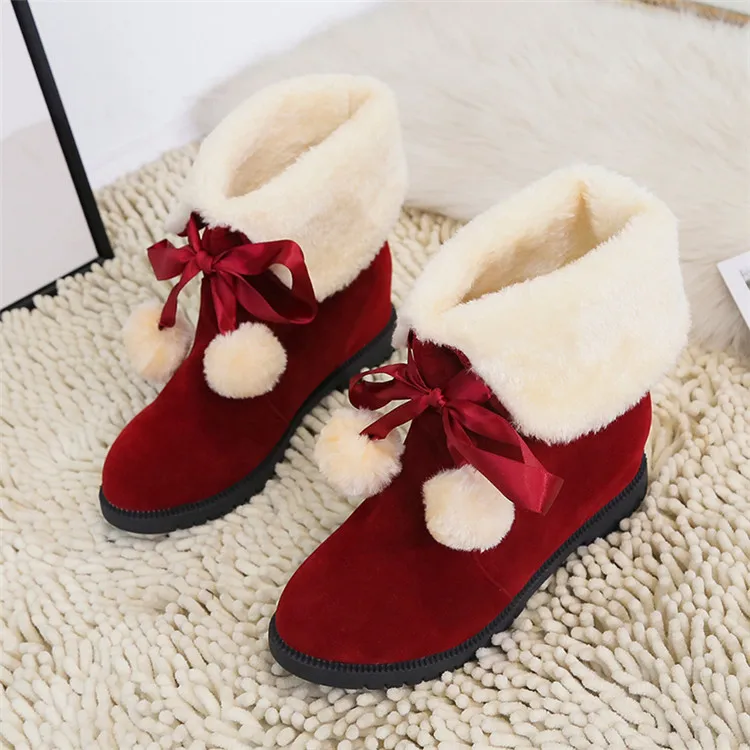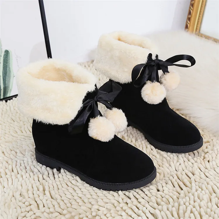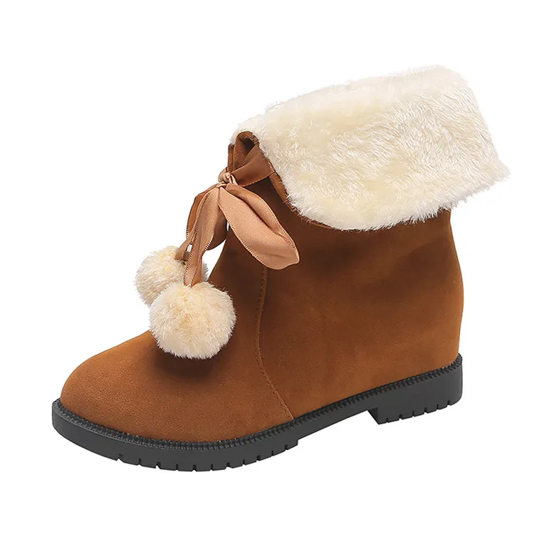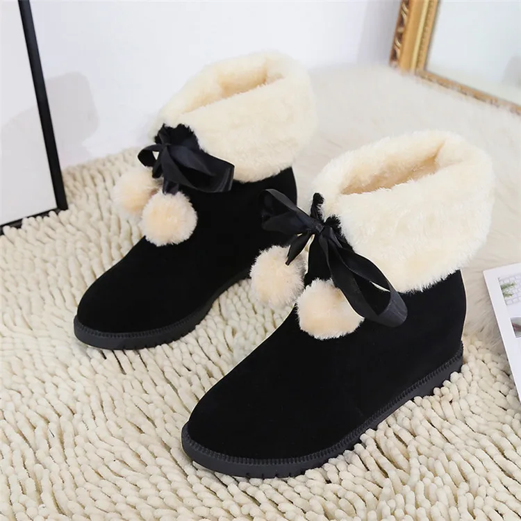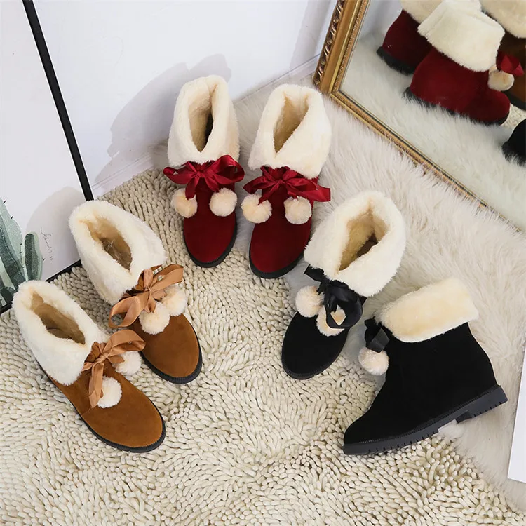 Winter Flock Leather Warm Snow Shoes Women Boots Mid-calf Plush Fur Velvet Boots Shoes Booties Woman