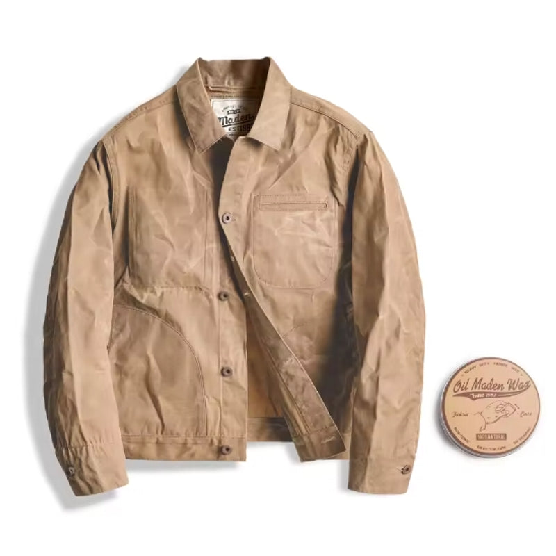 Canvas Oil Wax Men Jackets Khaki Retro Multi-pocket