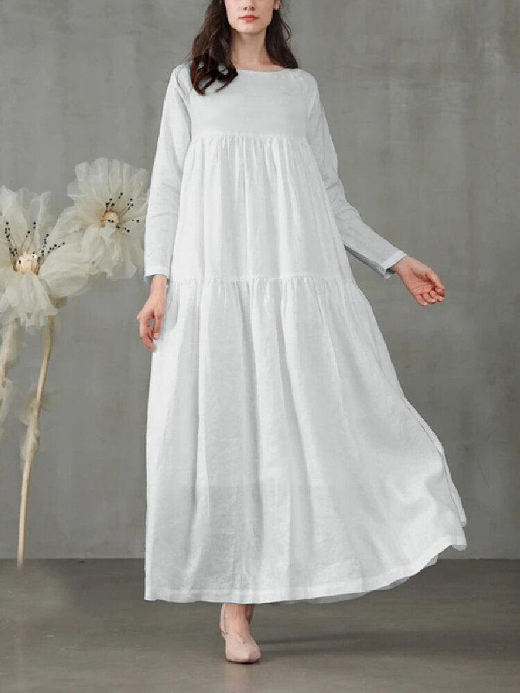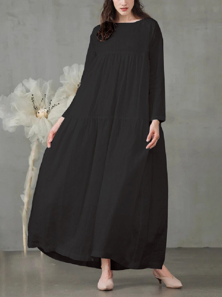 Casual Mustard Yellow Long Sleeve Loose Women Maxi Dress