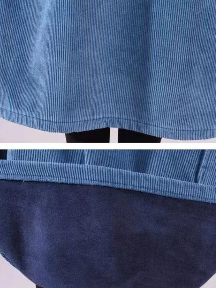 Retro Corduroy Vestidos Velvet High Neck Dress