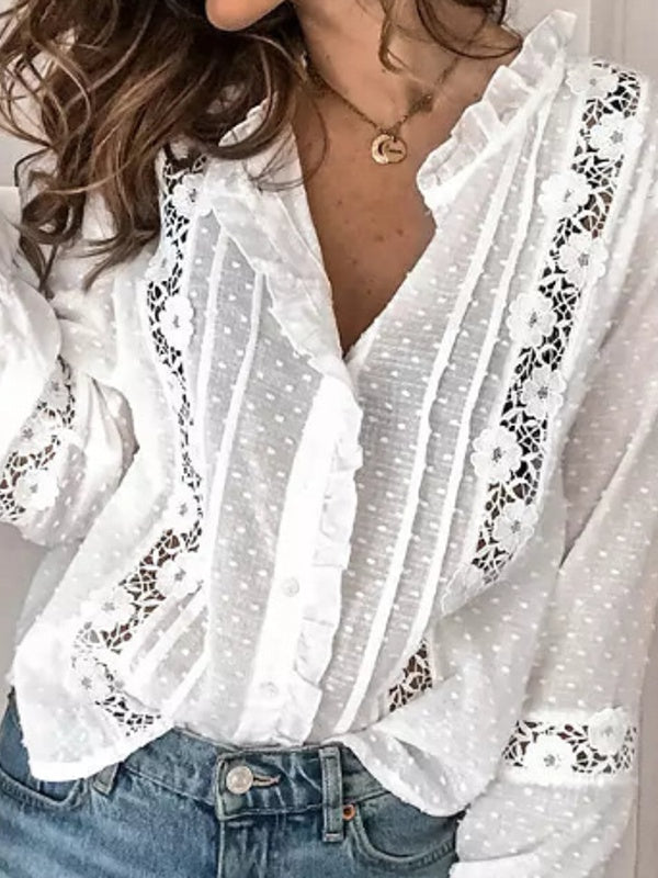 Elegant Shirts Lace Blouse Shirts Women Long Sleeve