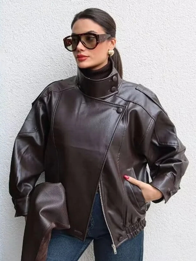Fall Black Long Sleeve Pebble Faux Leather Jacket