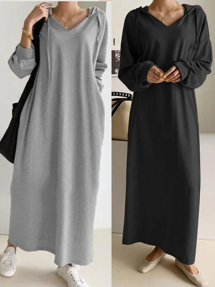Fashion Simple Retro Hooded Dress Sweatshirt