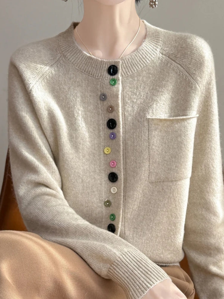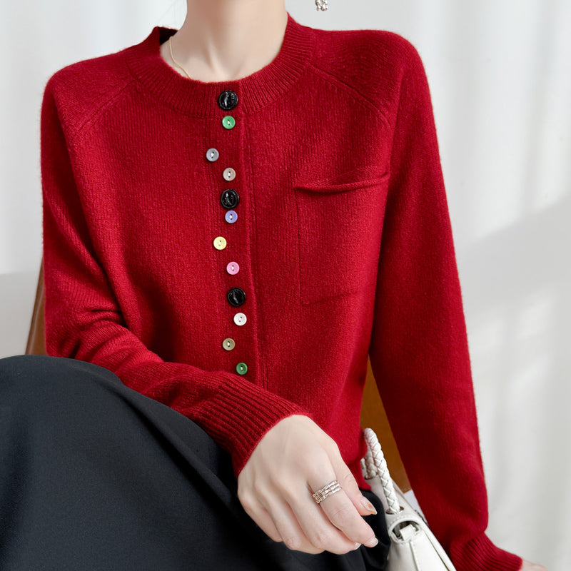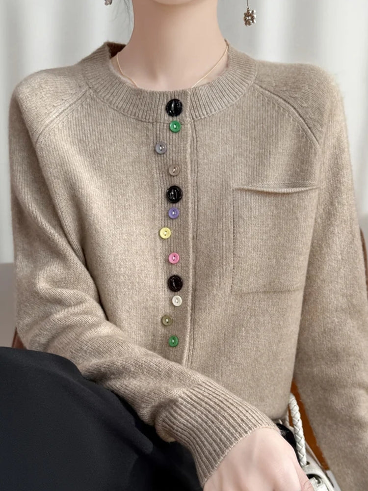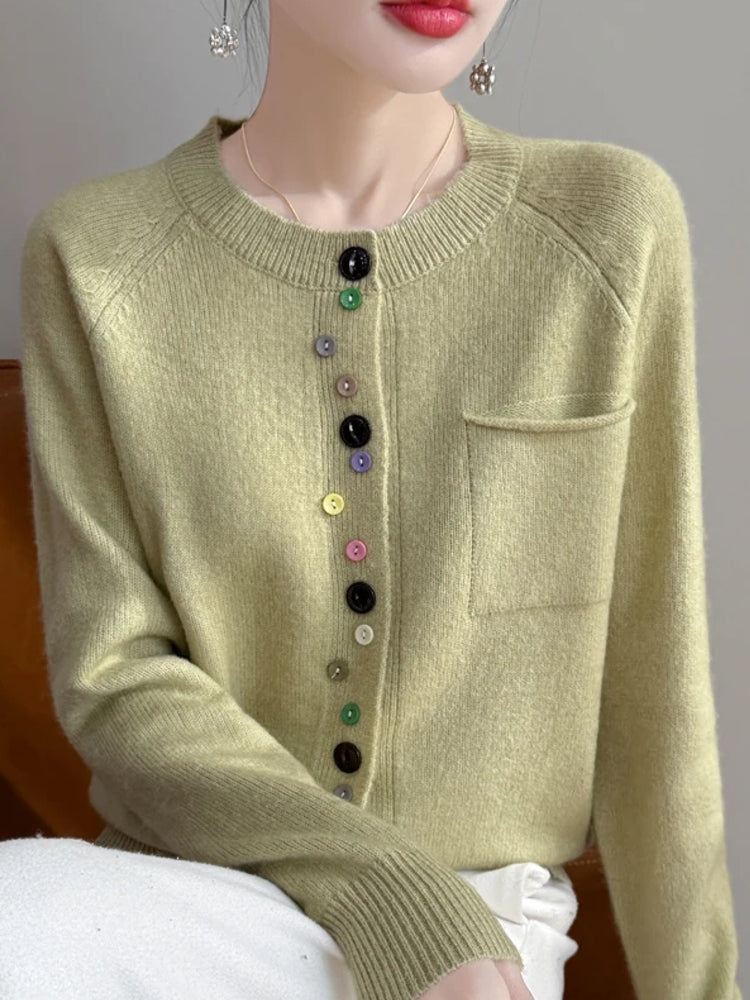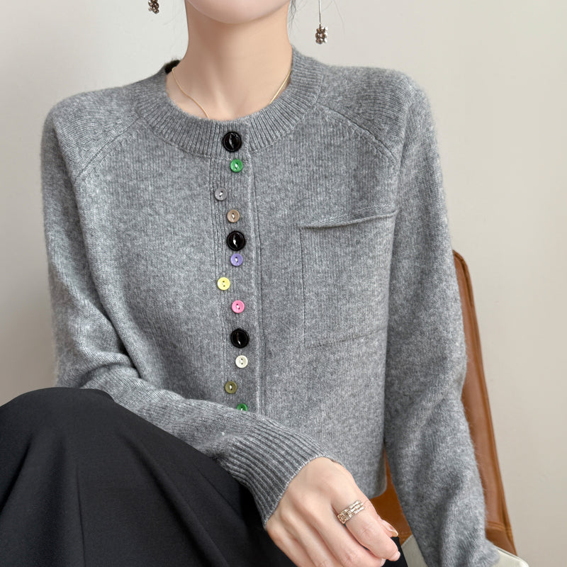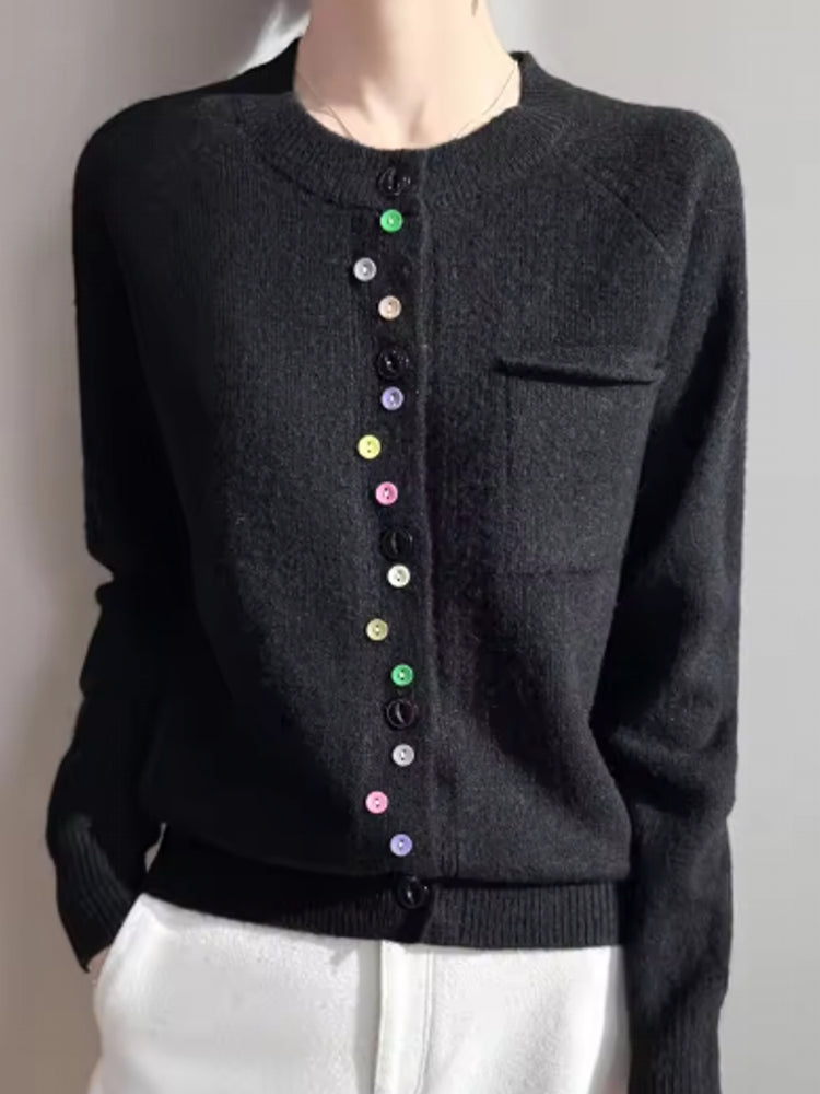 Fashion Spring Color Button Knit Top