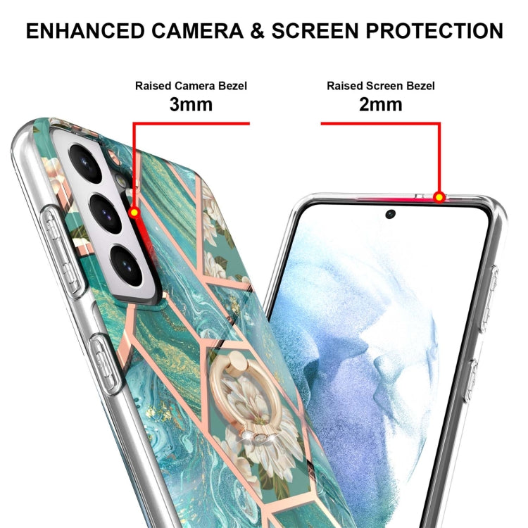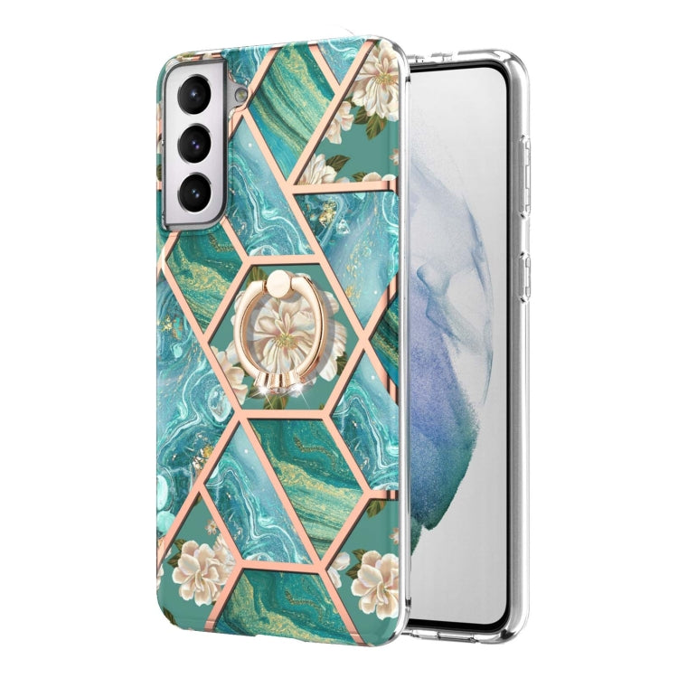 For Samsung Galaxy S21+ 5G Electroplating Splicing Marble Flower Pattern TPU Shockproof Case with