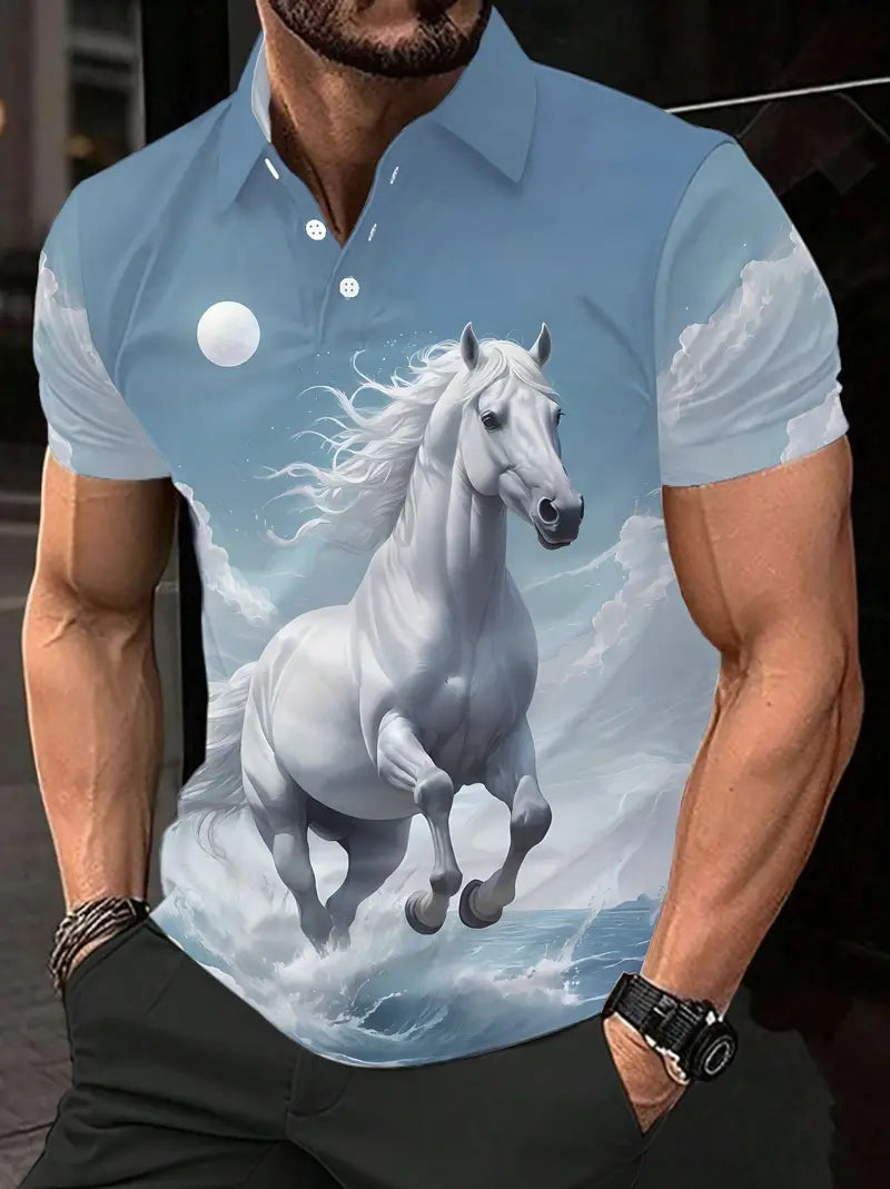 Harajuku Horse Graphic Polo Shirts! These stylish and comfortable shirts are perfect for summer, featuring short sleeves and a unique 3D printed horse design. Ideal for horse lovers and those who enjoy loose, trendy streetwear, they also make a great choice for casual golf outings.