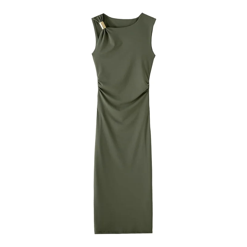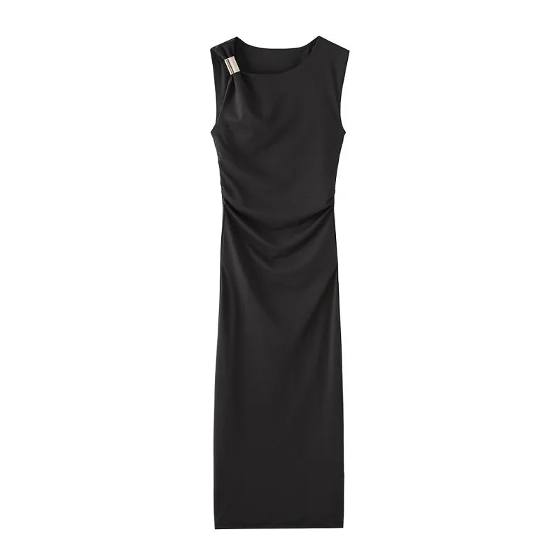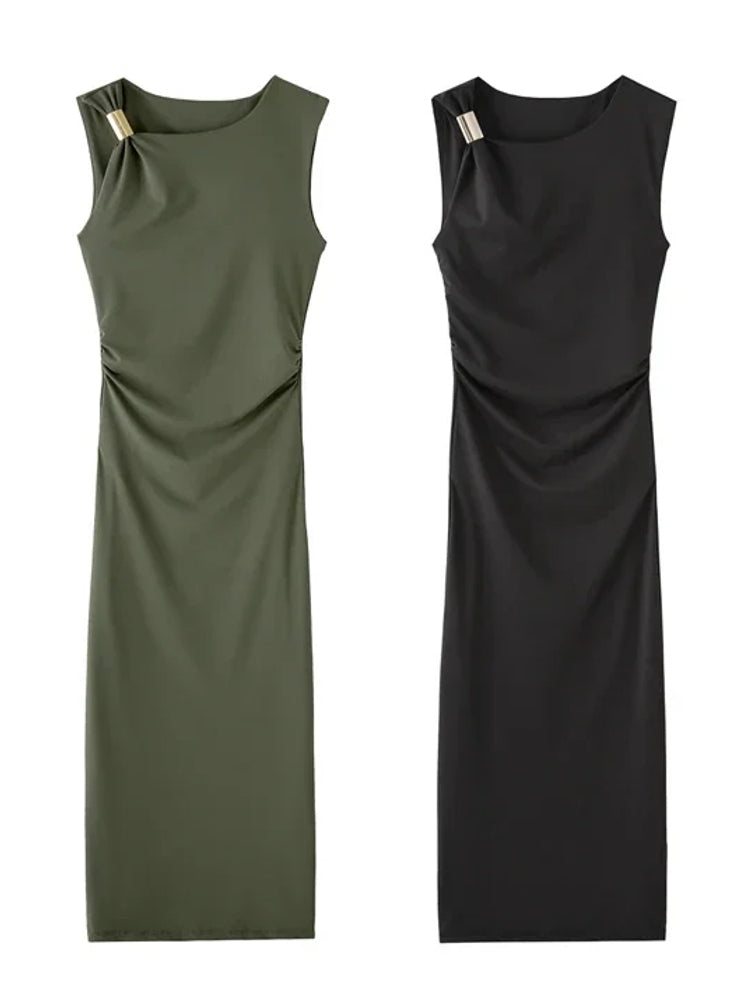 Collections:Clothing, Midi Dresses, Sleeveless Dresses, Solid Color Dresses, Women's Clothing