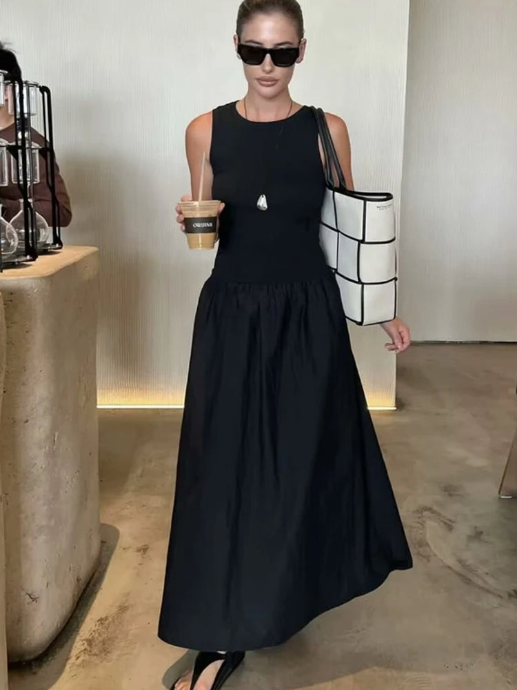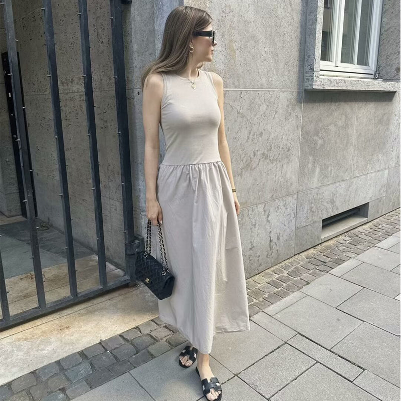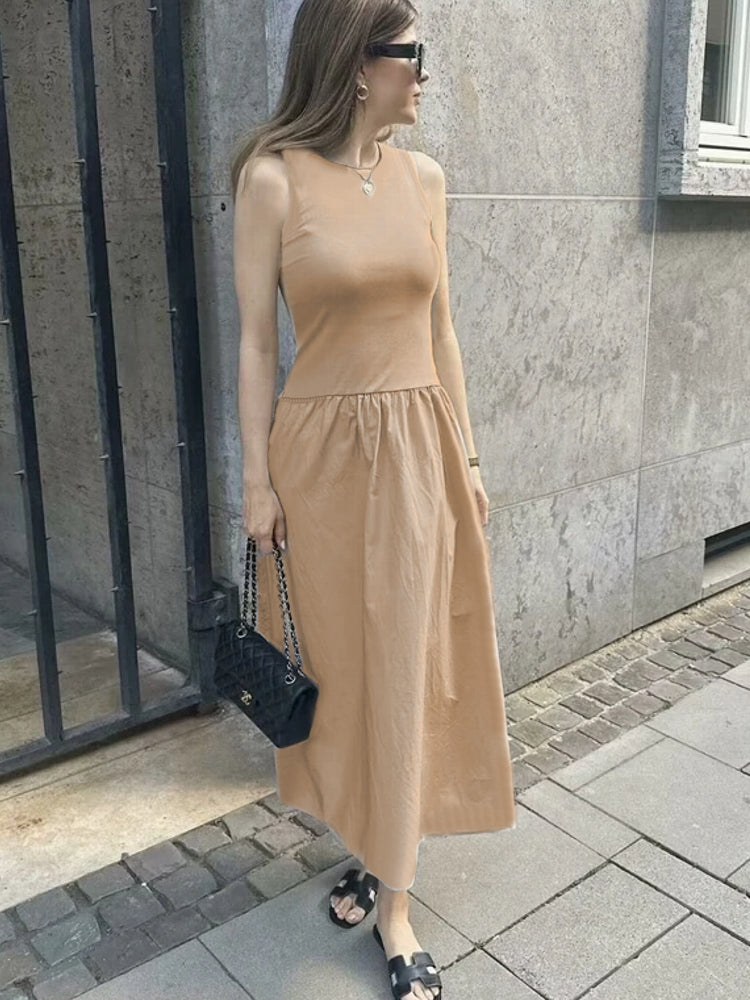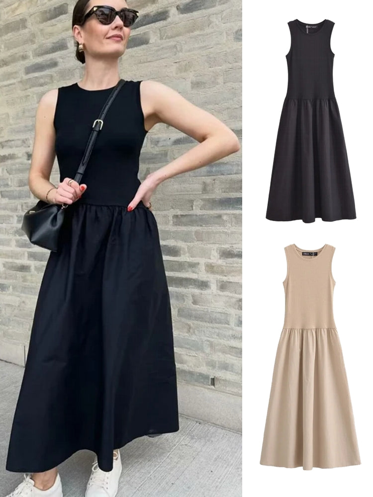 Collections:Clothing, Midi Dresses, Sleeveless Dresses, Solid Color Dresses, Women's Clothing