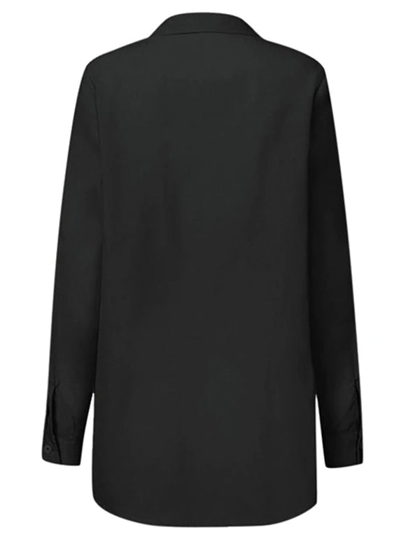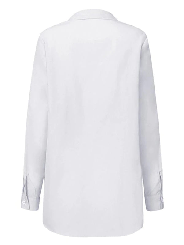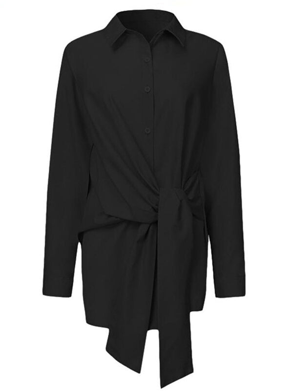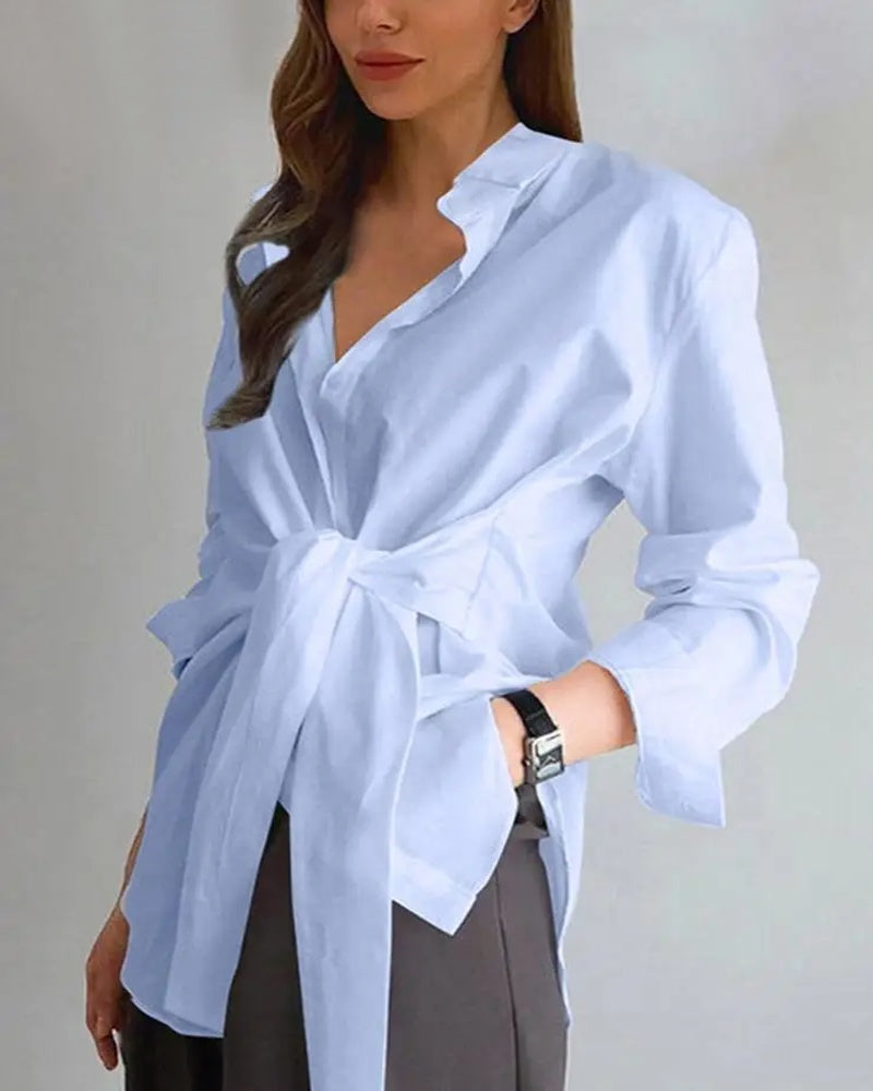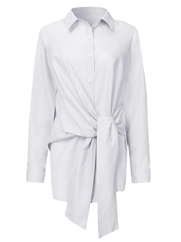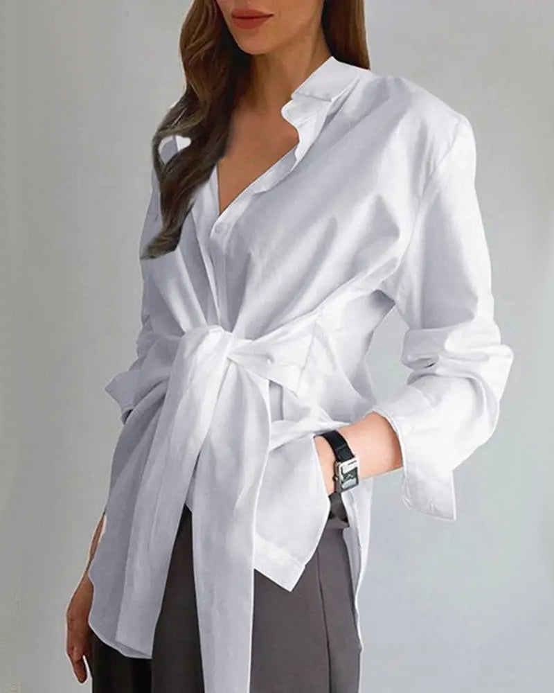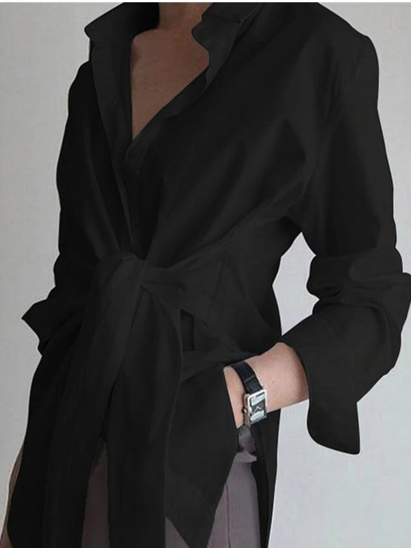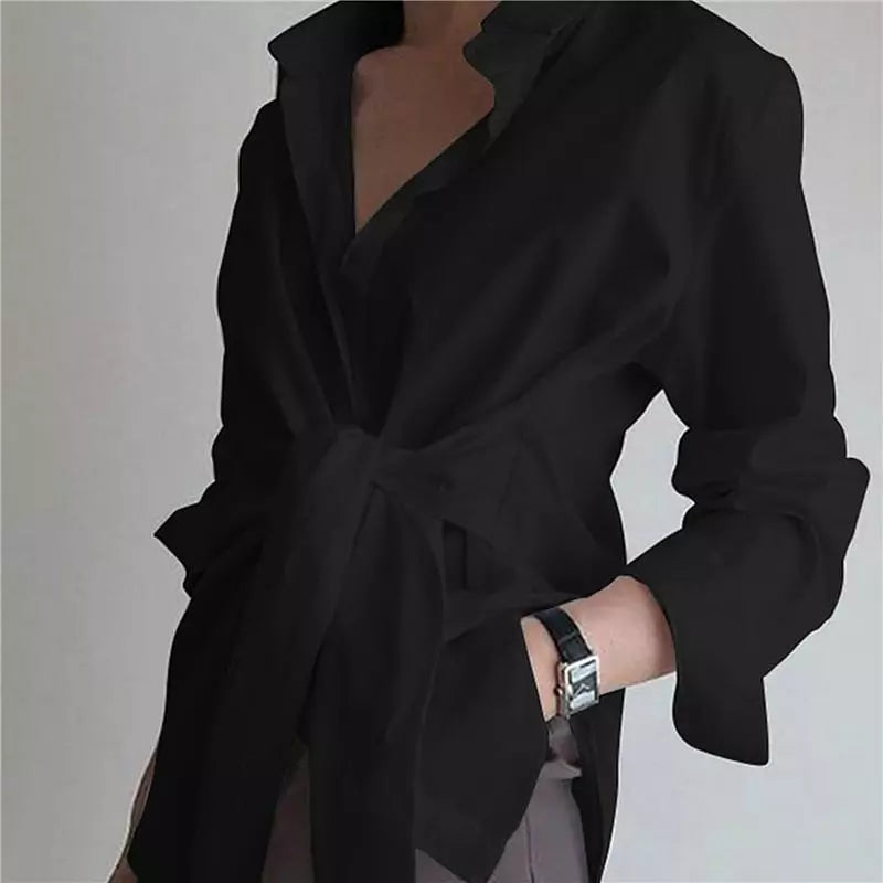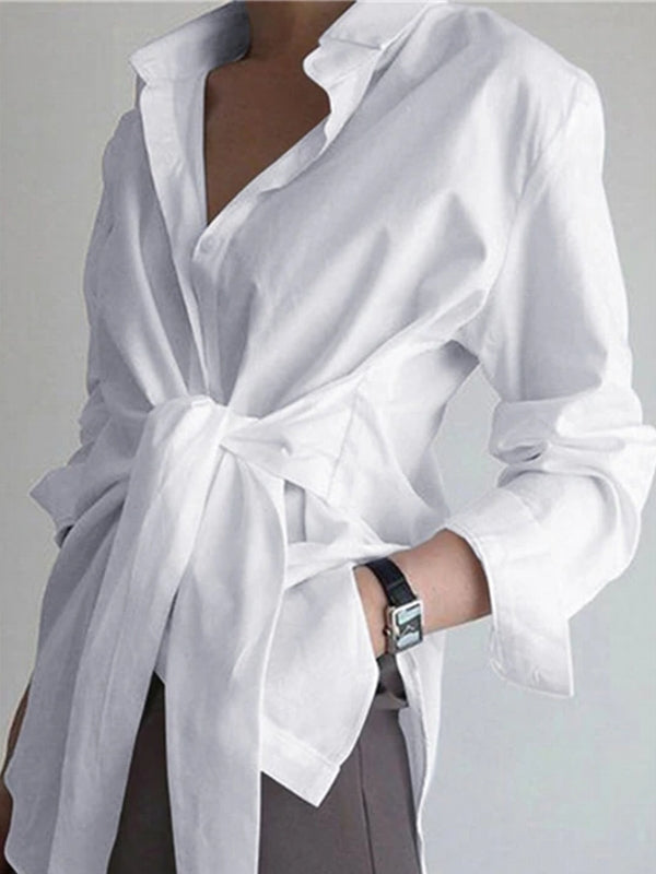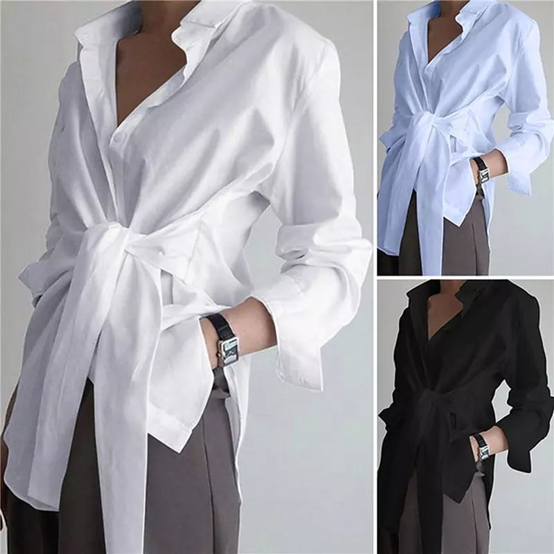 Fashion Blouses Women's Long Sleeve Lapel Casual Loose Shirts Spring Solid Color Bandage Clothes Elegant Lady Tops